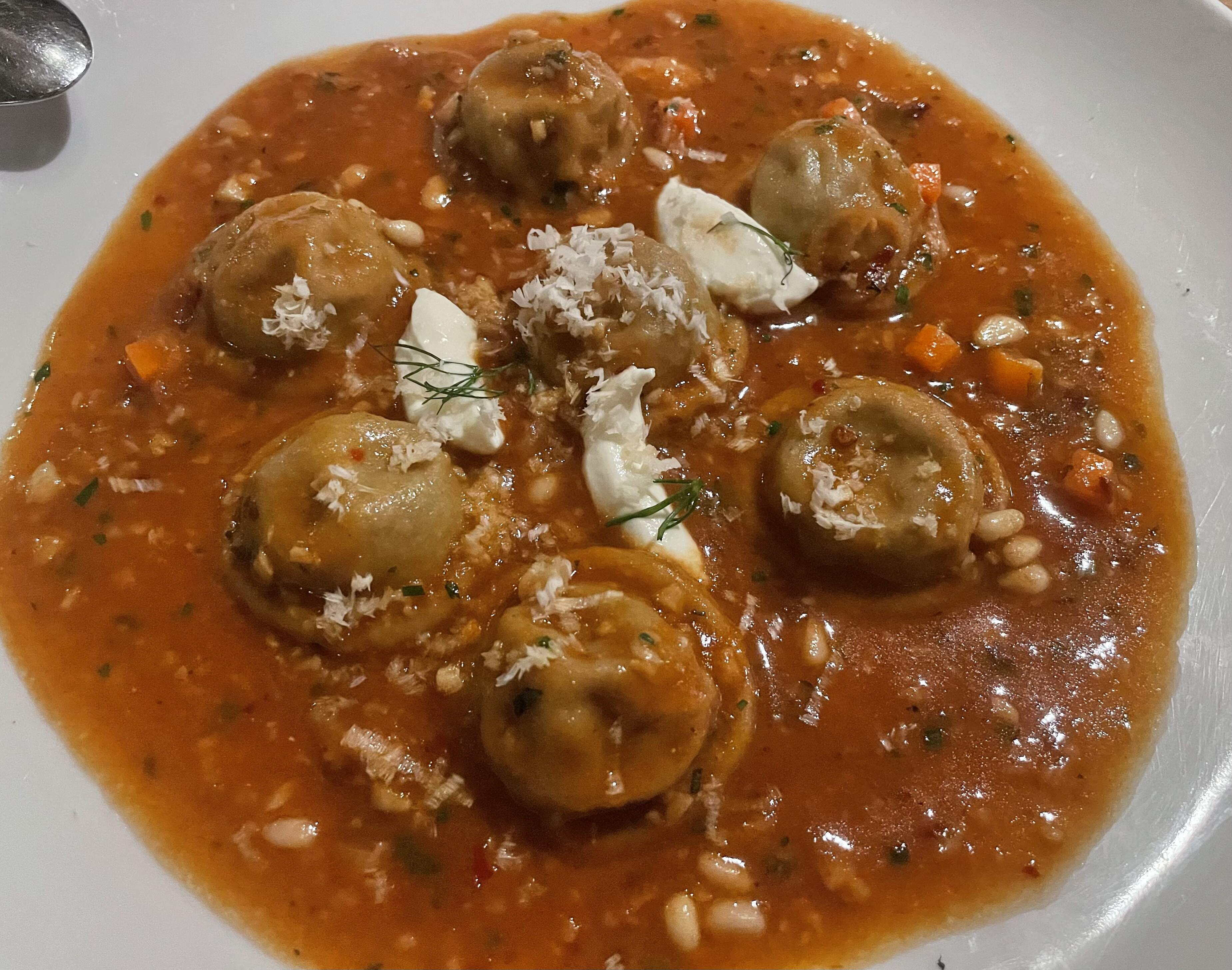 Braised Oxtail Raviolini, pine nuts, carrots, oxtail jus, horseradish, whipped ricotta