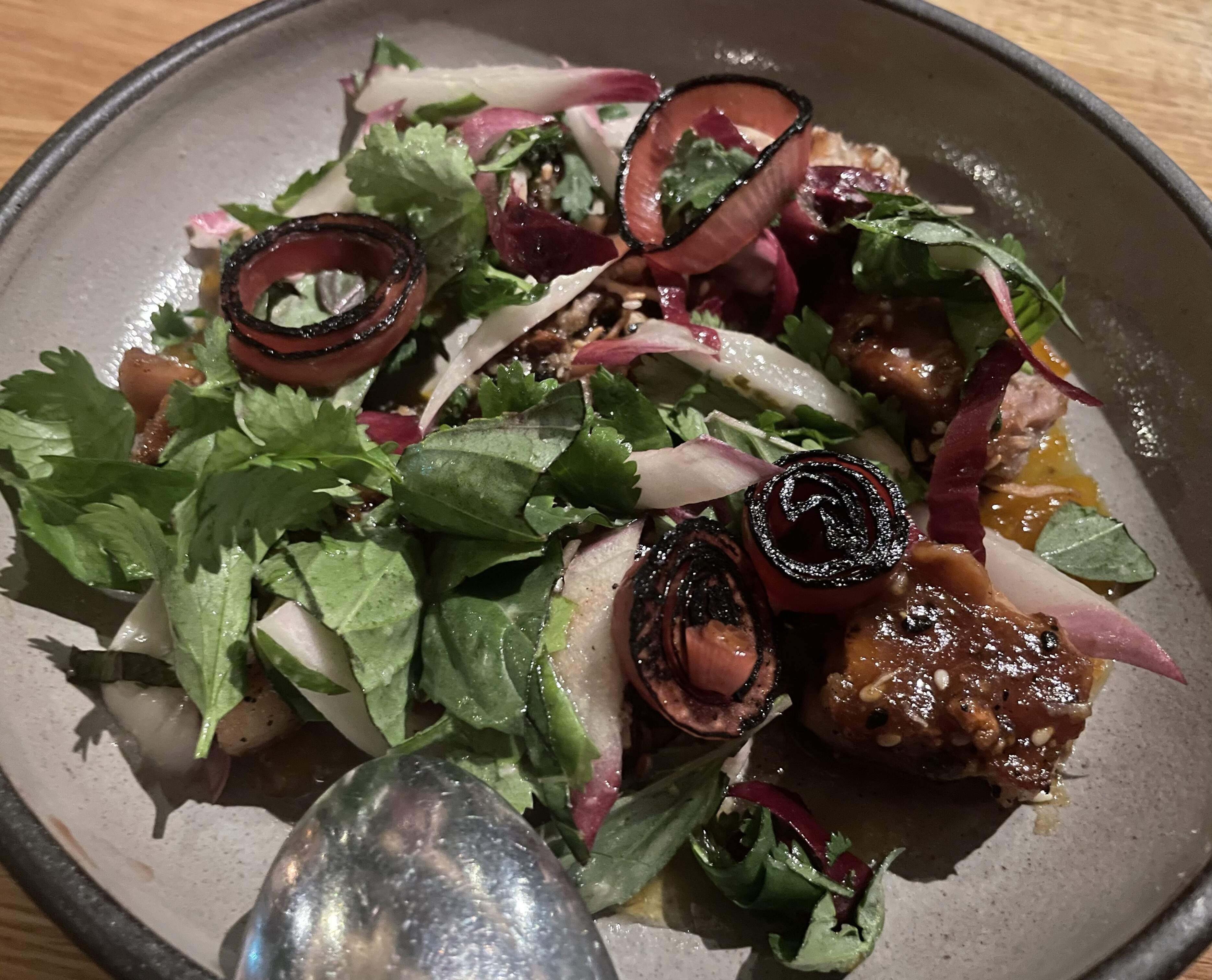 Duroc Pork Belly, miso glaze, peanuts, kumquat marmalade, endive