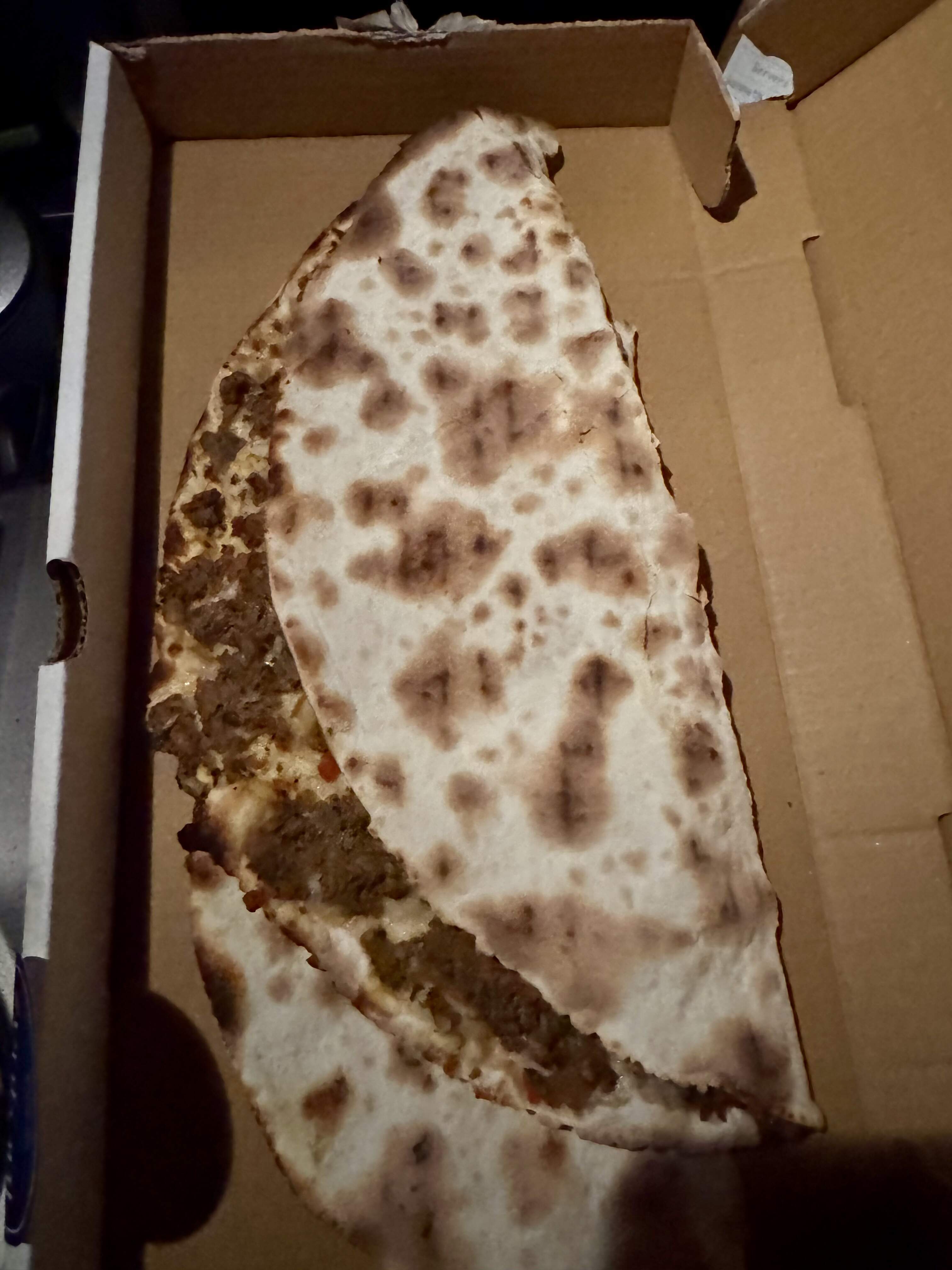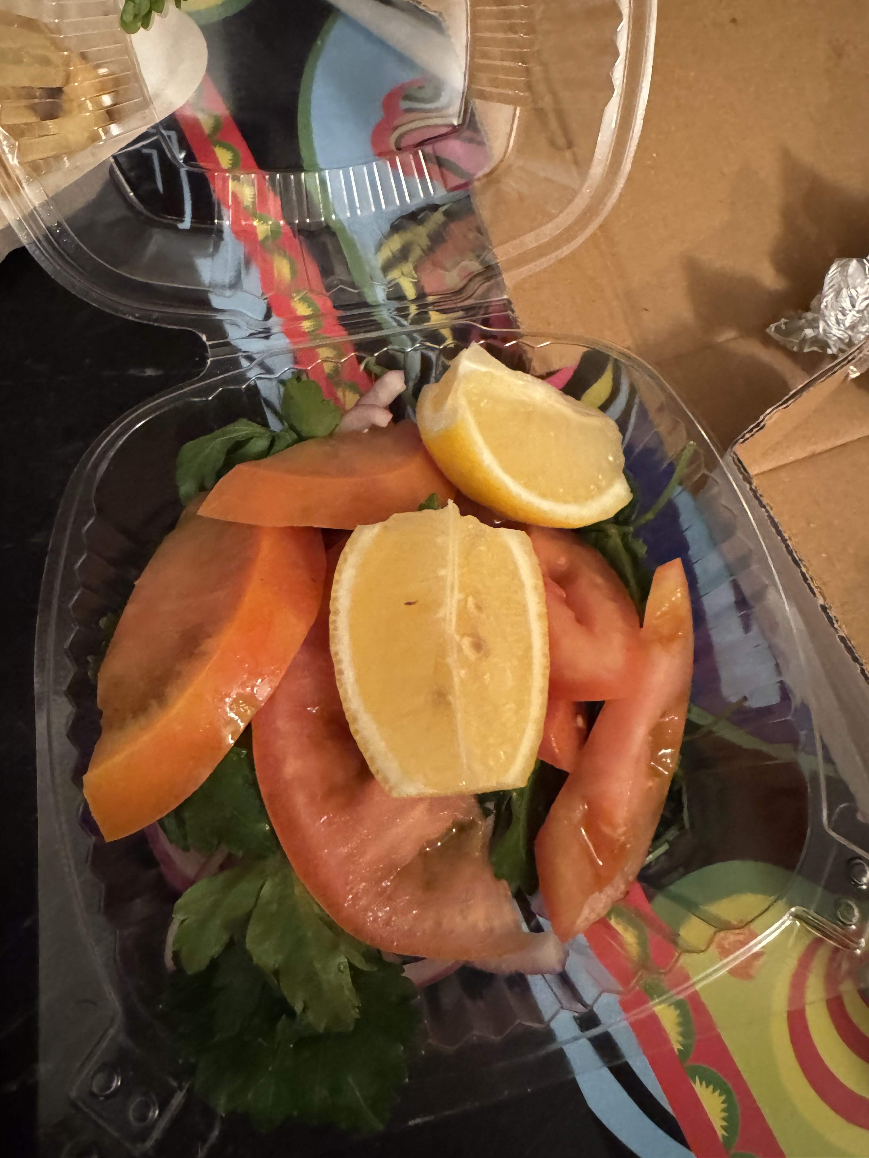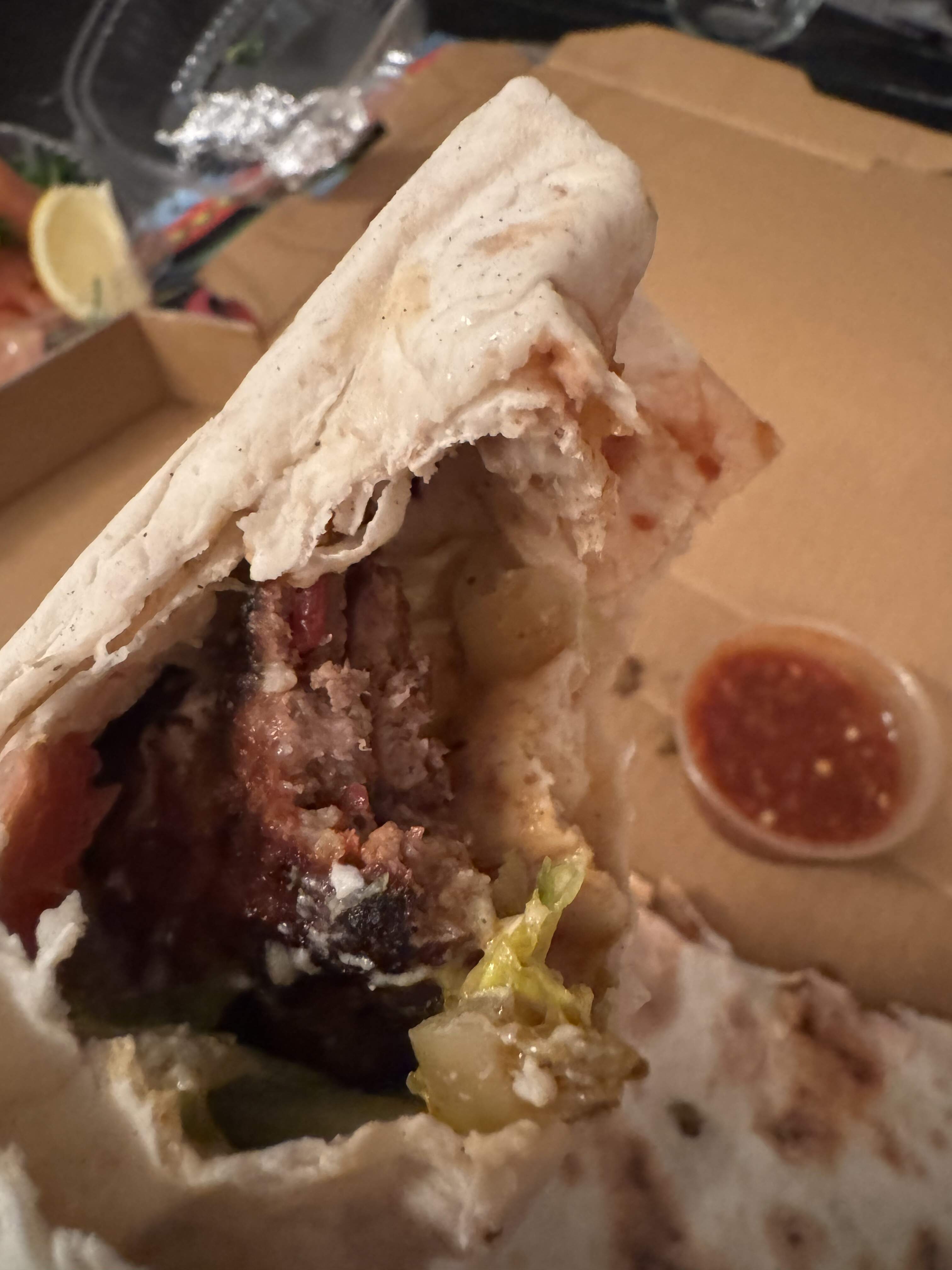 Lahmacun - (minced meat, tomatoes, peppers, and fresh herbs. Served with parsley, onions, and a slice of lemon.) had a nice spice, and was perfect with the tomatoes, herbs and a squeeze of lemon to cut the richness. I scarfed one down in the car, and the flatbread had already started to get a little soggy probably better to eat there.