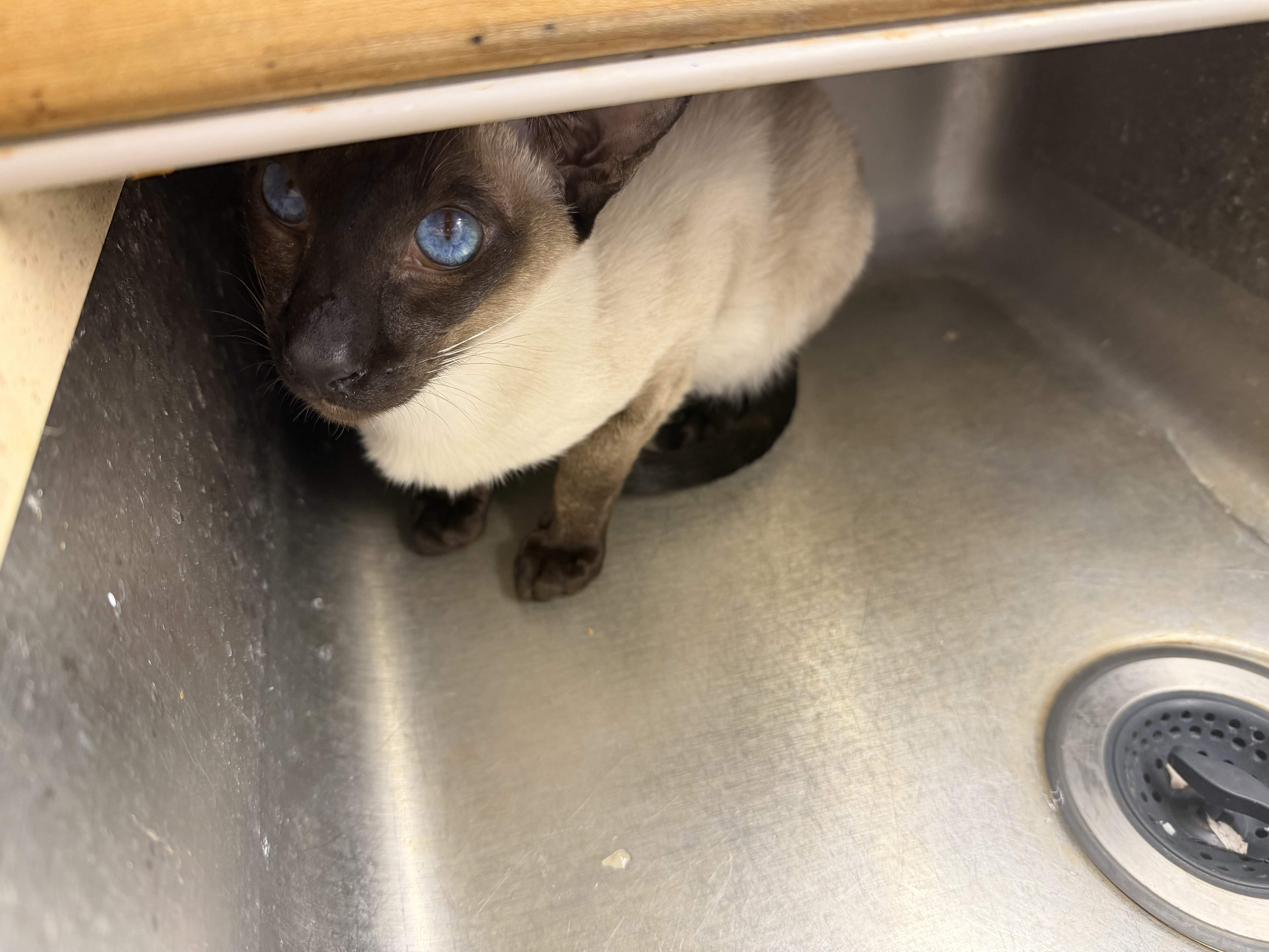 Will someone please explain why Ziggy has taken to hunkering under the rollup dish rack in/on the kitchen sink. Even turning on the faucet doesnât budge him. He just gets his paws and butt wet. He leaves when he wants to, and announces it. And no, he makes no effort to drink from the faucet.