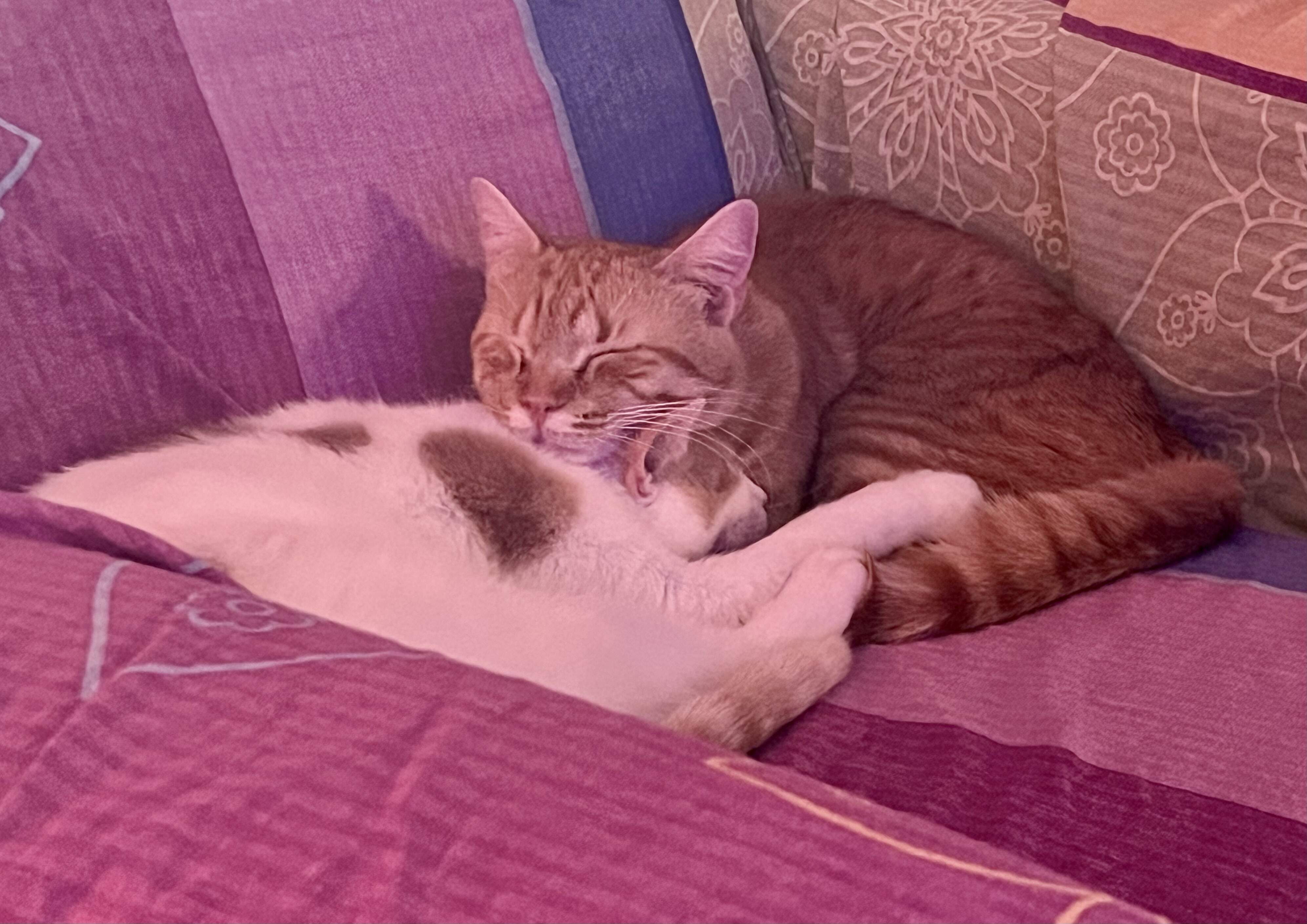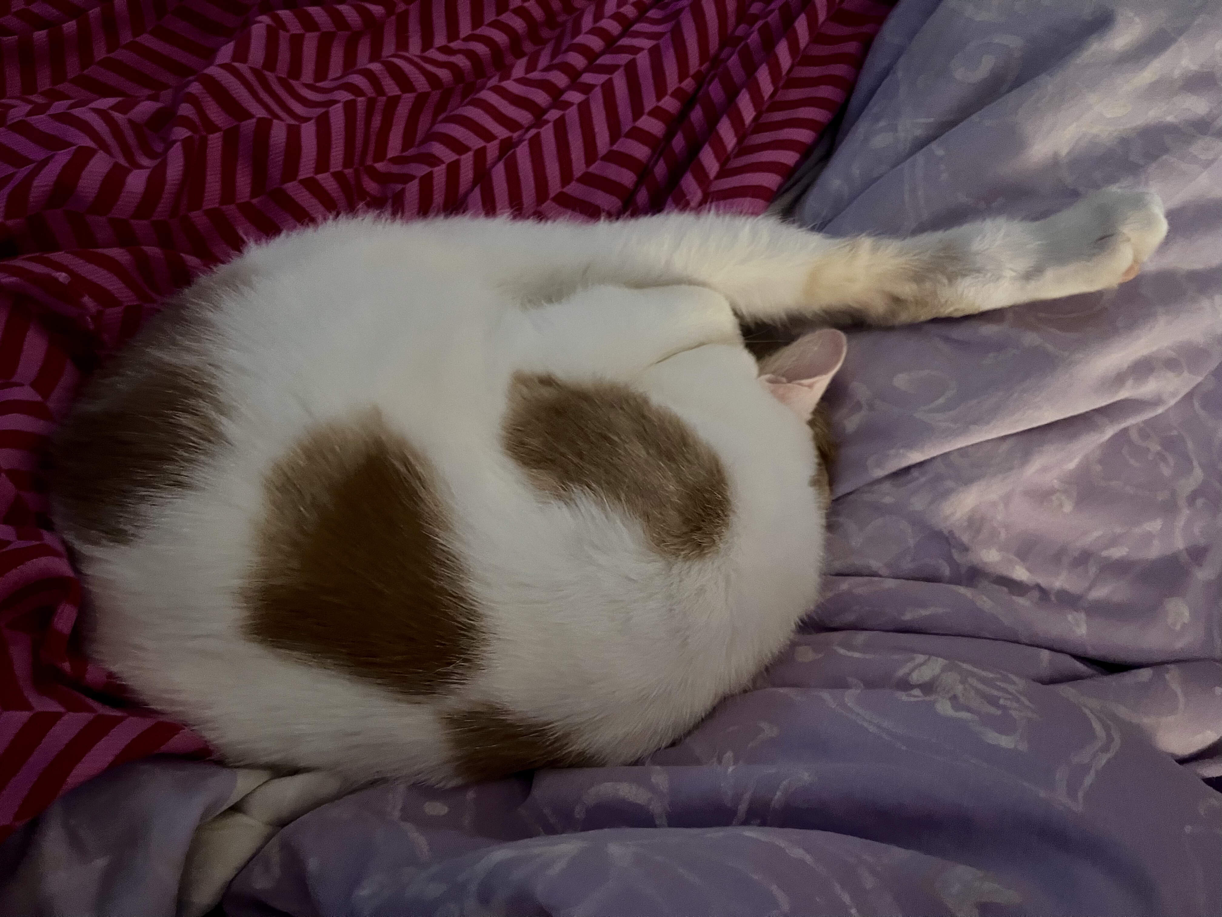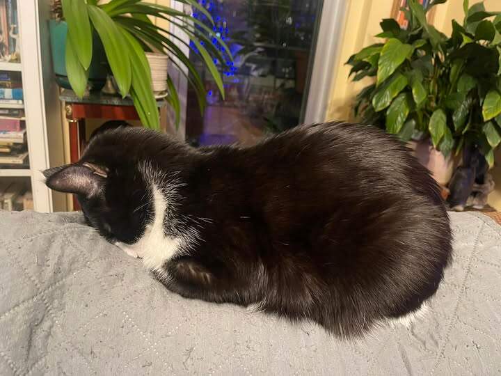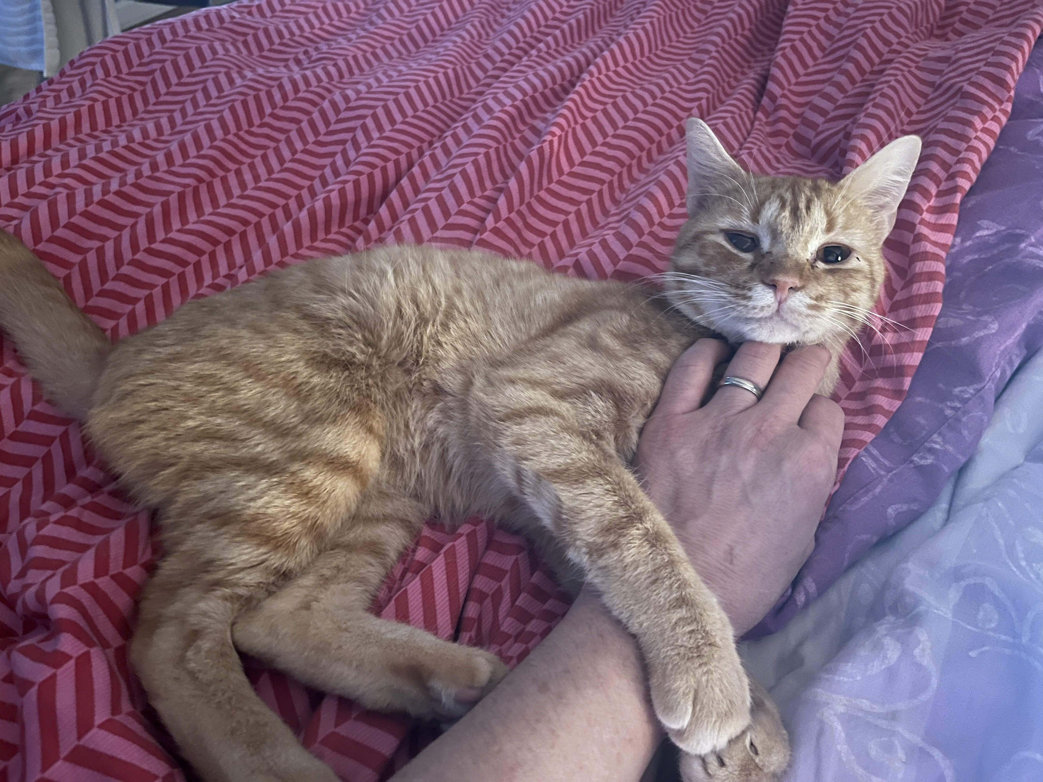 Jonesy came to snuggle this morning and laid down for a hot sec. He’s such a goofball. He gets real antsy when he’s being pet “too much” ![]()