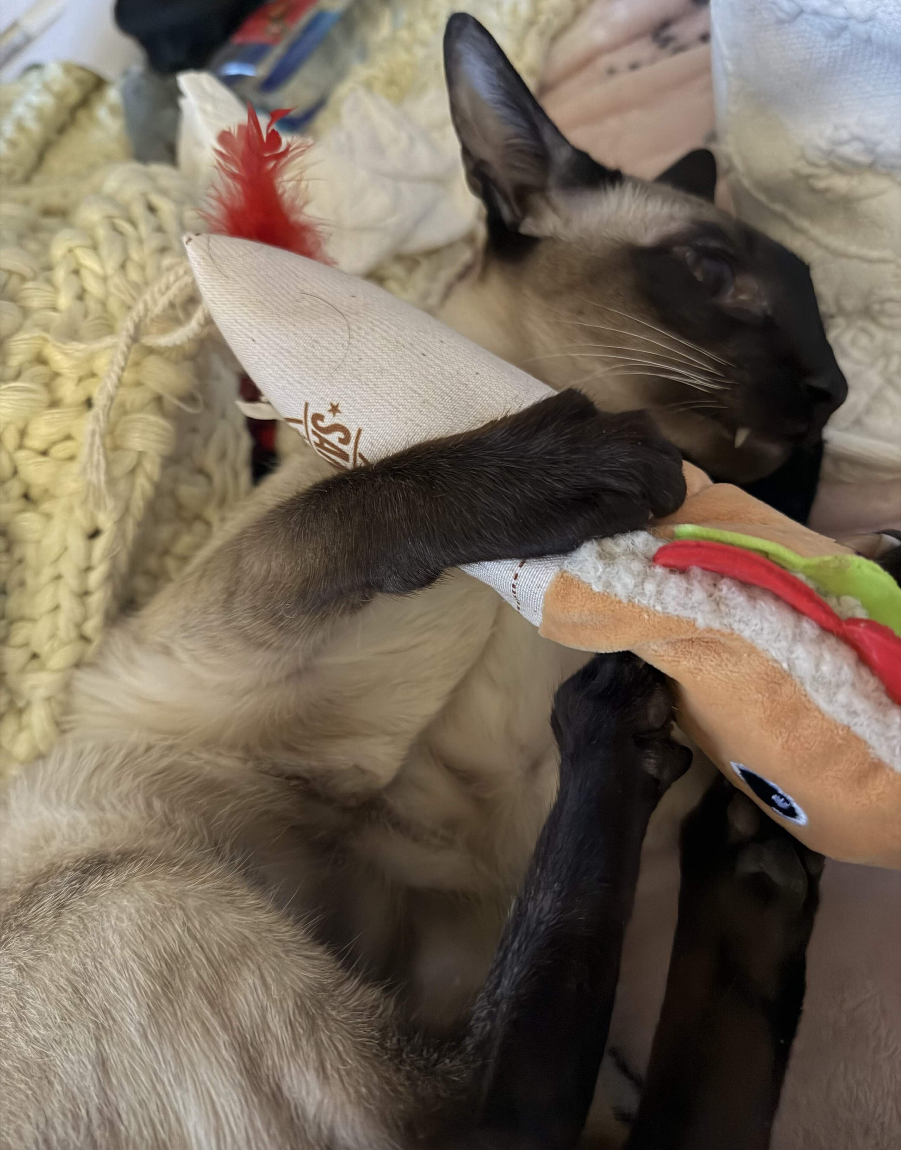 “Harmless,” goofy Jonesy hissed at my PIC last night when he tried to rescue a pork rind that had fallen on the kitchen floor ![]()