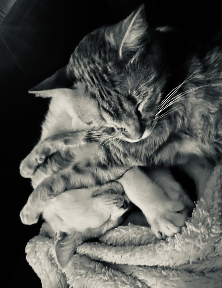 Matisse making sure the buttinski stays all nice and warm and cozy! LOL Livin’ the life, livin’ the life.