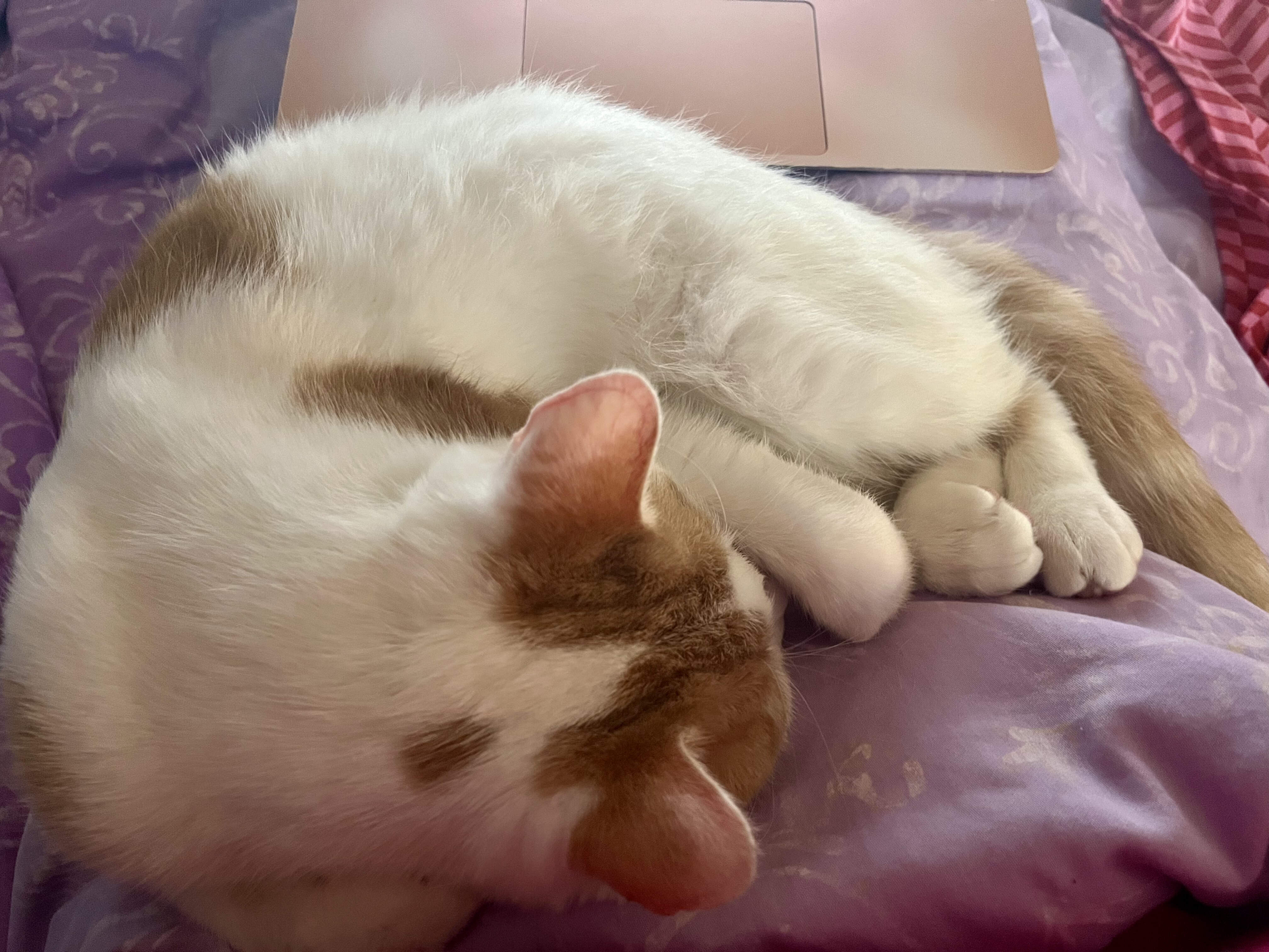 Our first cat, The Dude, would sleep on top of me at night, starting on my thighs, then moving up to my lower back. My PIC never understood how I could sleep like that.