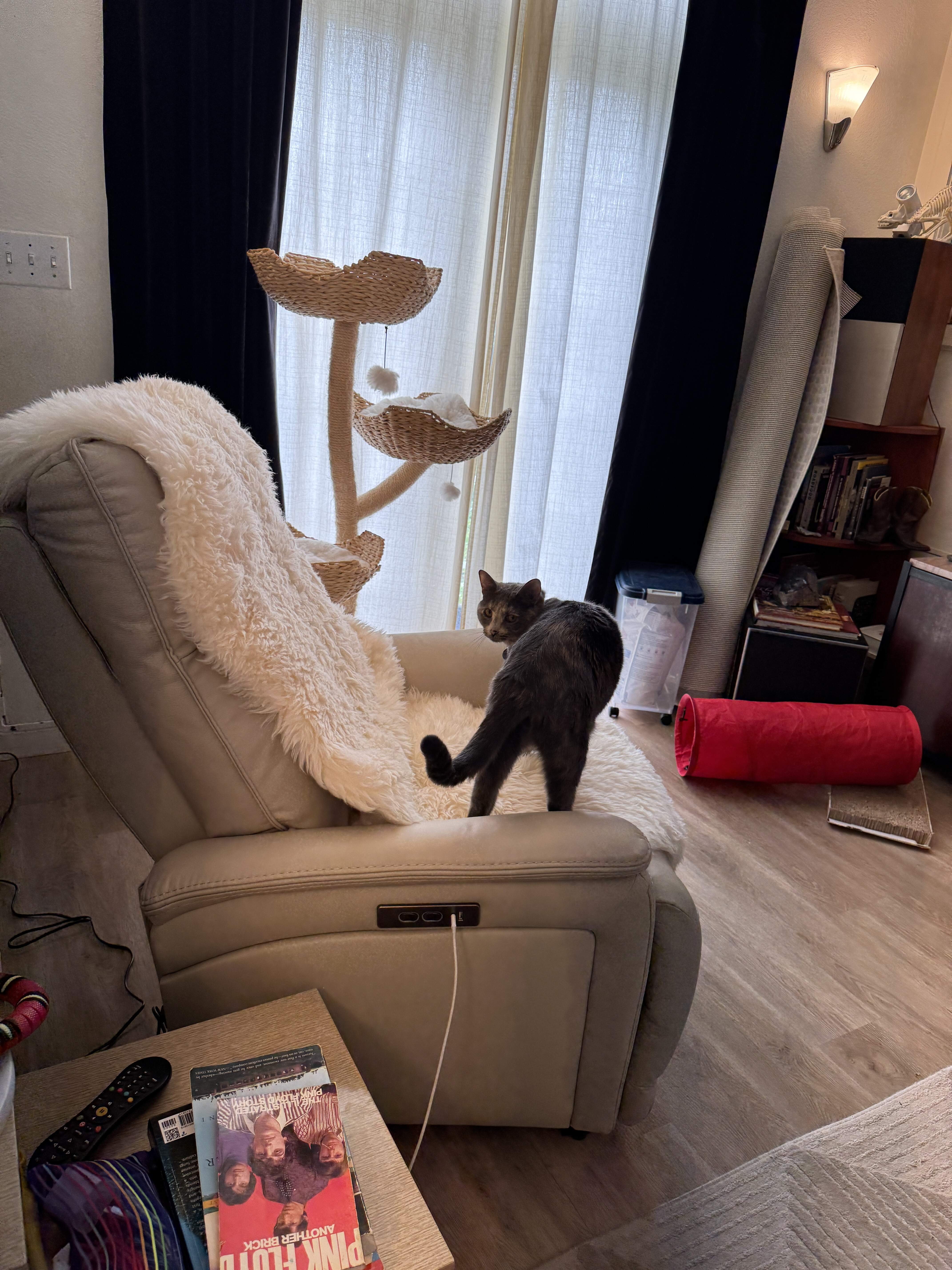 Years later I decided I preferred Siamese type cats, much more lively. I had a pair of Abyssinians and now a Tonkinese. My daughter works at the SPCA, has 2 rescues. This one was very afraid of her new recliner but has started to adjust to it.