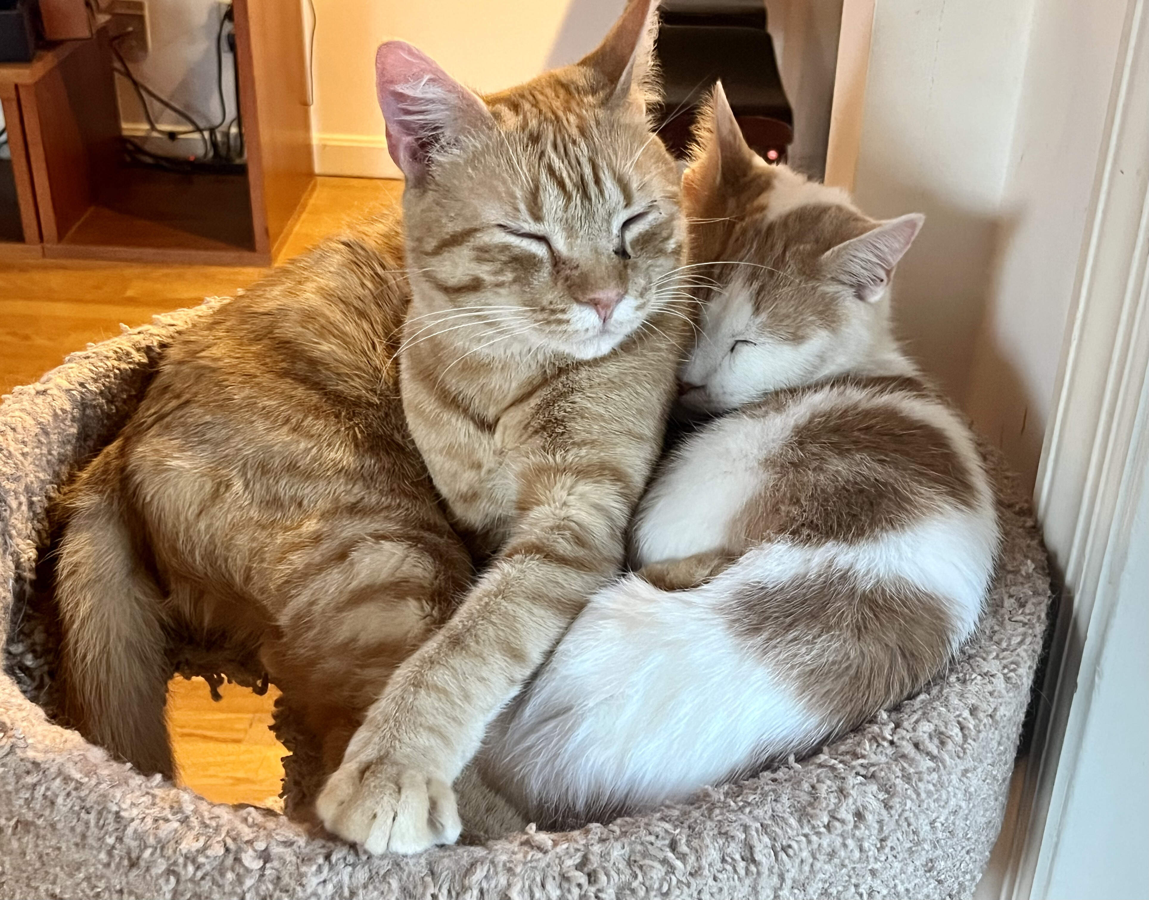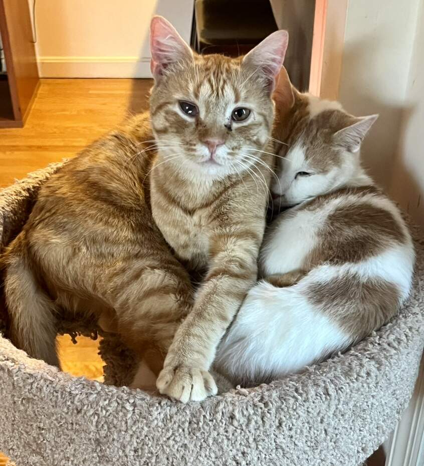 They both sleep with their faces deeply embedded in the other’s fur, so I guess they assume we can breathe like cats ![]()