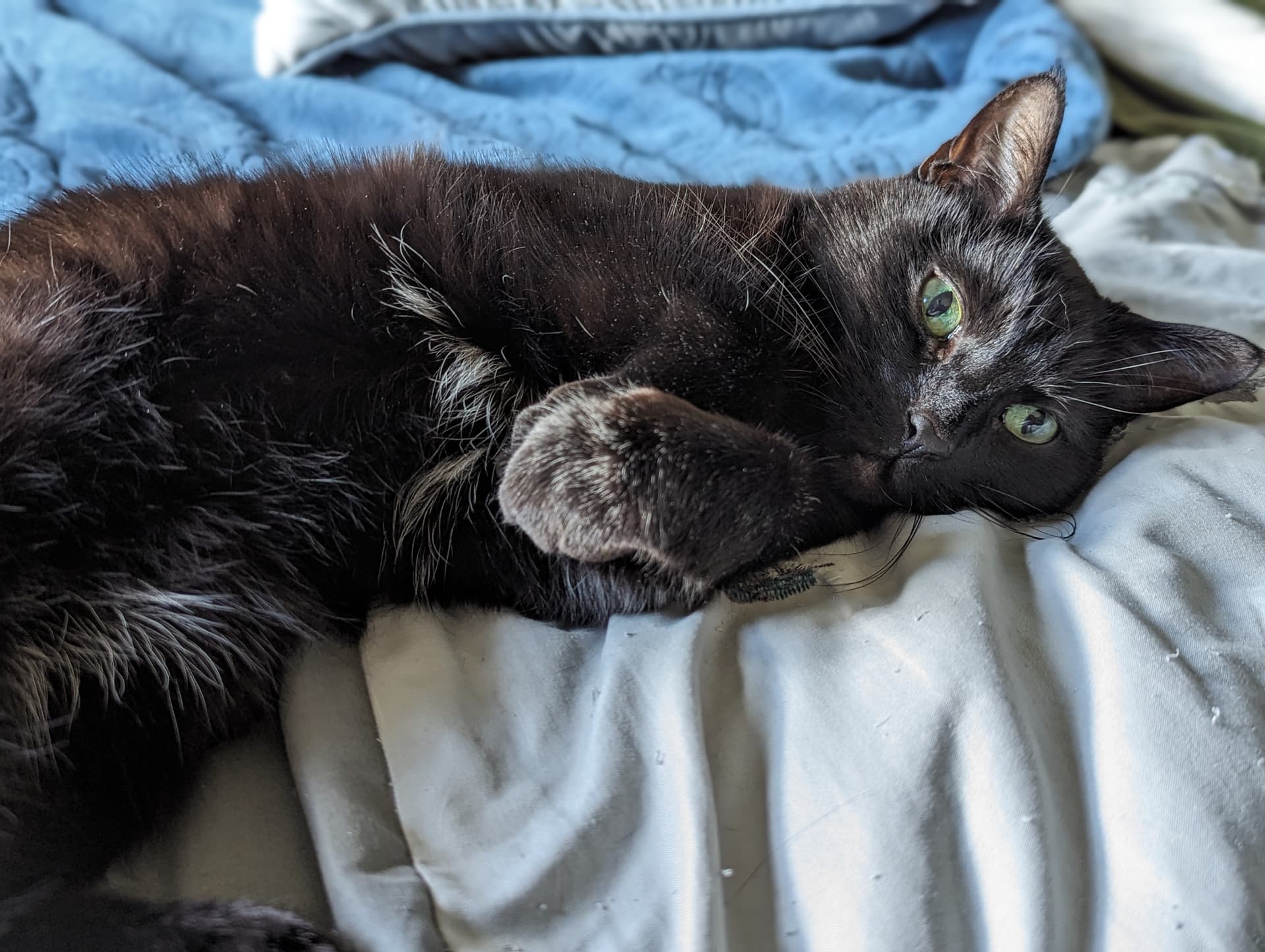 A very, very, very fat filet of cat. I’m in awe every day that he can still propel himself onto the bed. For now.