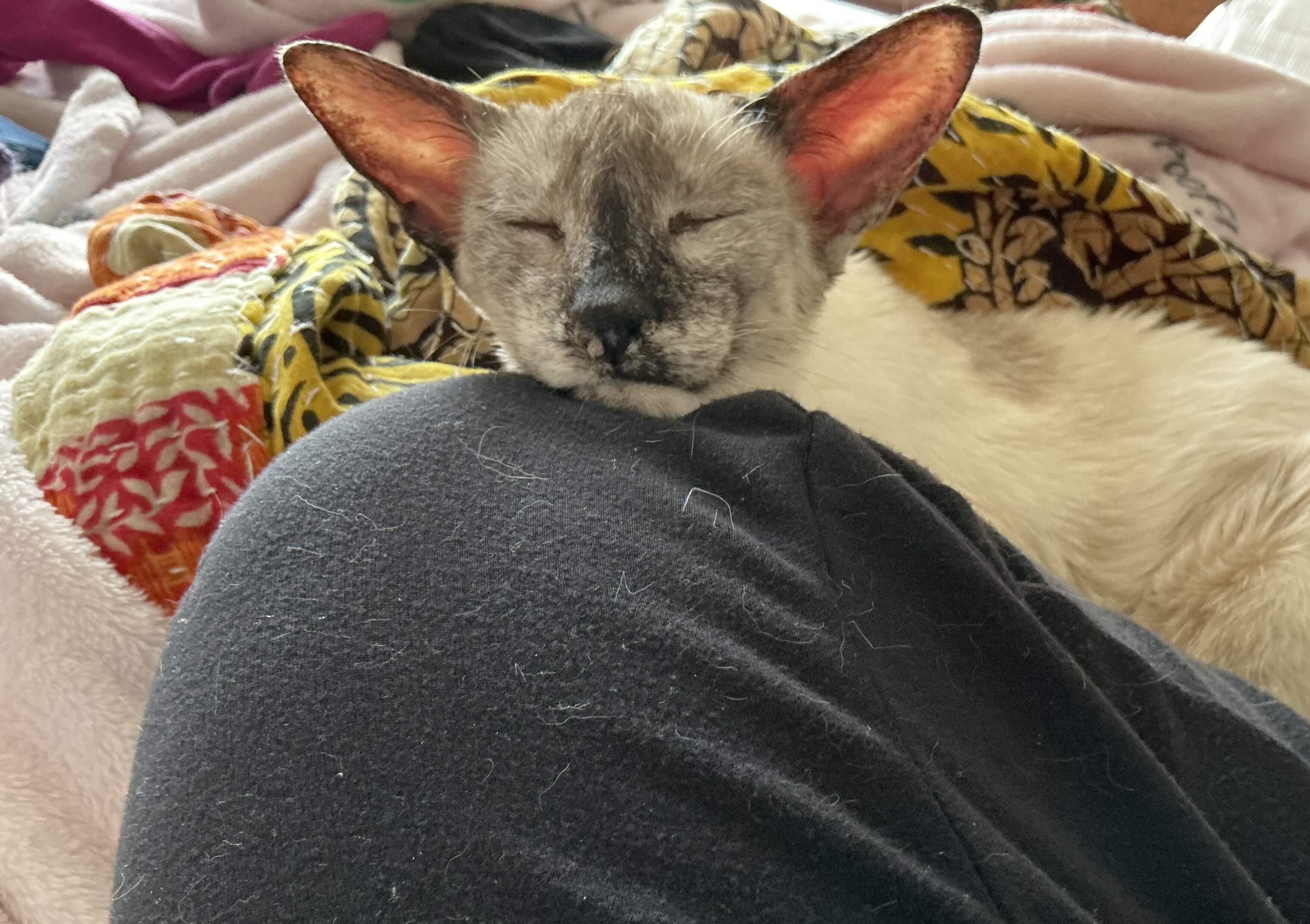 He’s getting food allergy prescription cat food (hydrolyzed protein) and a daily transdermal antihistamine next - they’re being shipped. We will be doing all ear flaps all day - my girl already gets 2 meds transdermally every day. If this doesn’t work next stop is a dermatologist. He’s finally asleep.