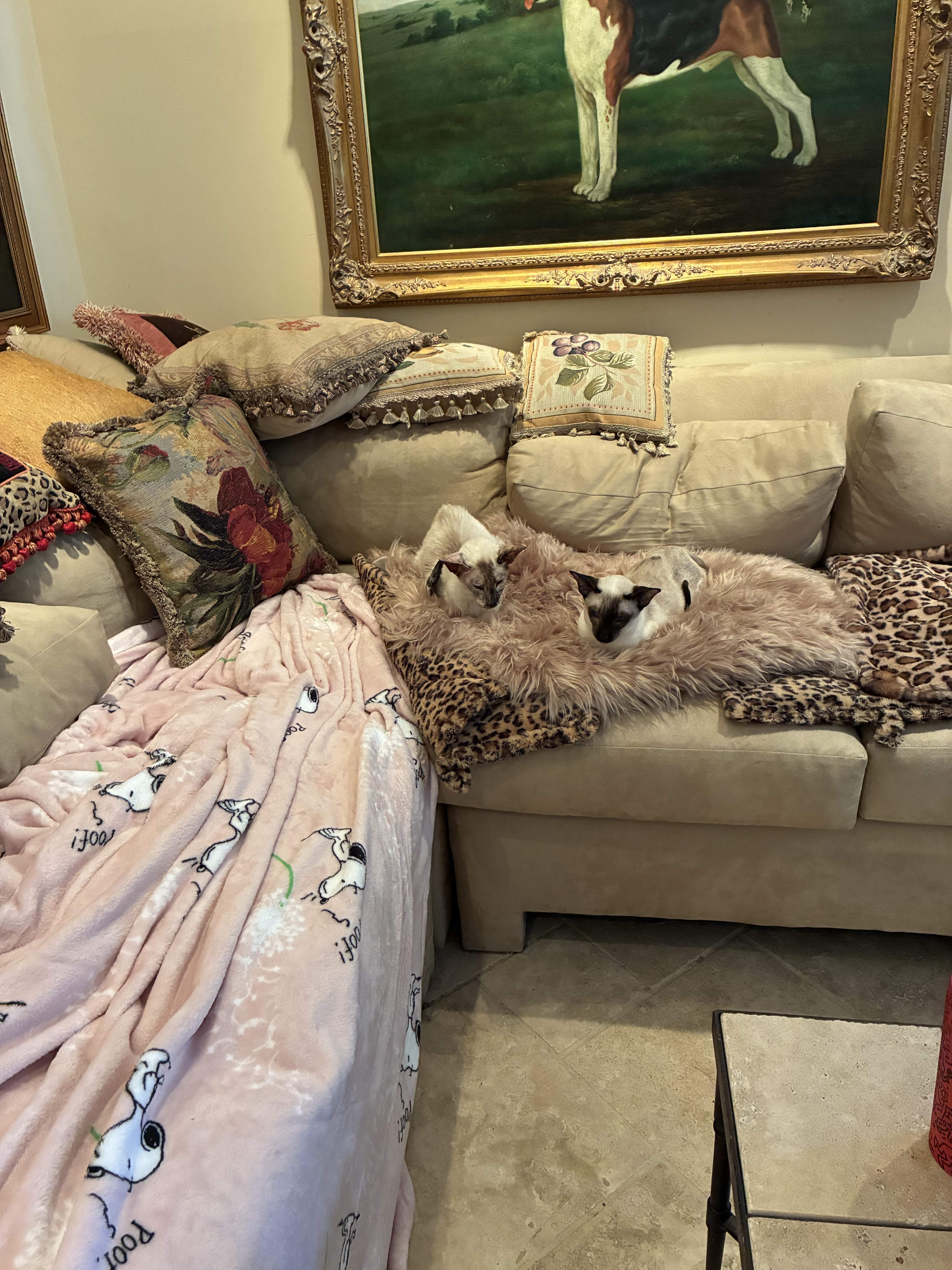 My wife and I just got a new sofa and recliner for the fam room. We picked colors based on our dog. He approves.