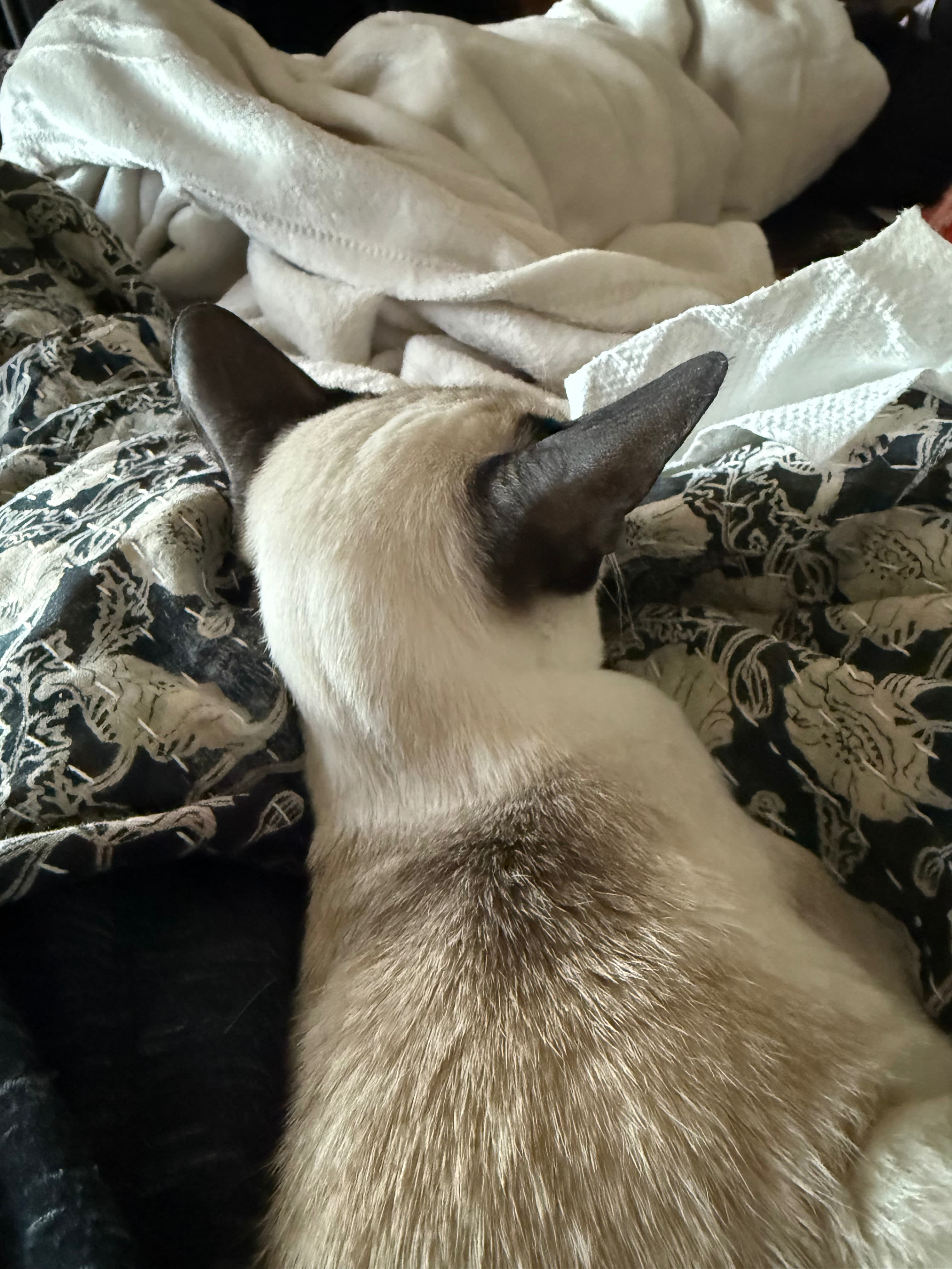 Ziggy is a real snuggler. I know I should get a sibling for him asap but with the stroke I don’t know if I’m up to it.