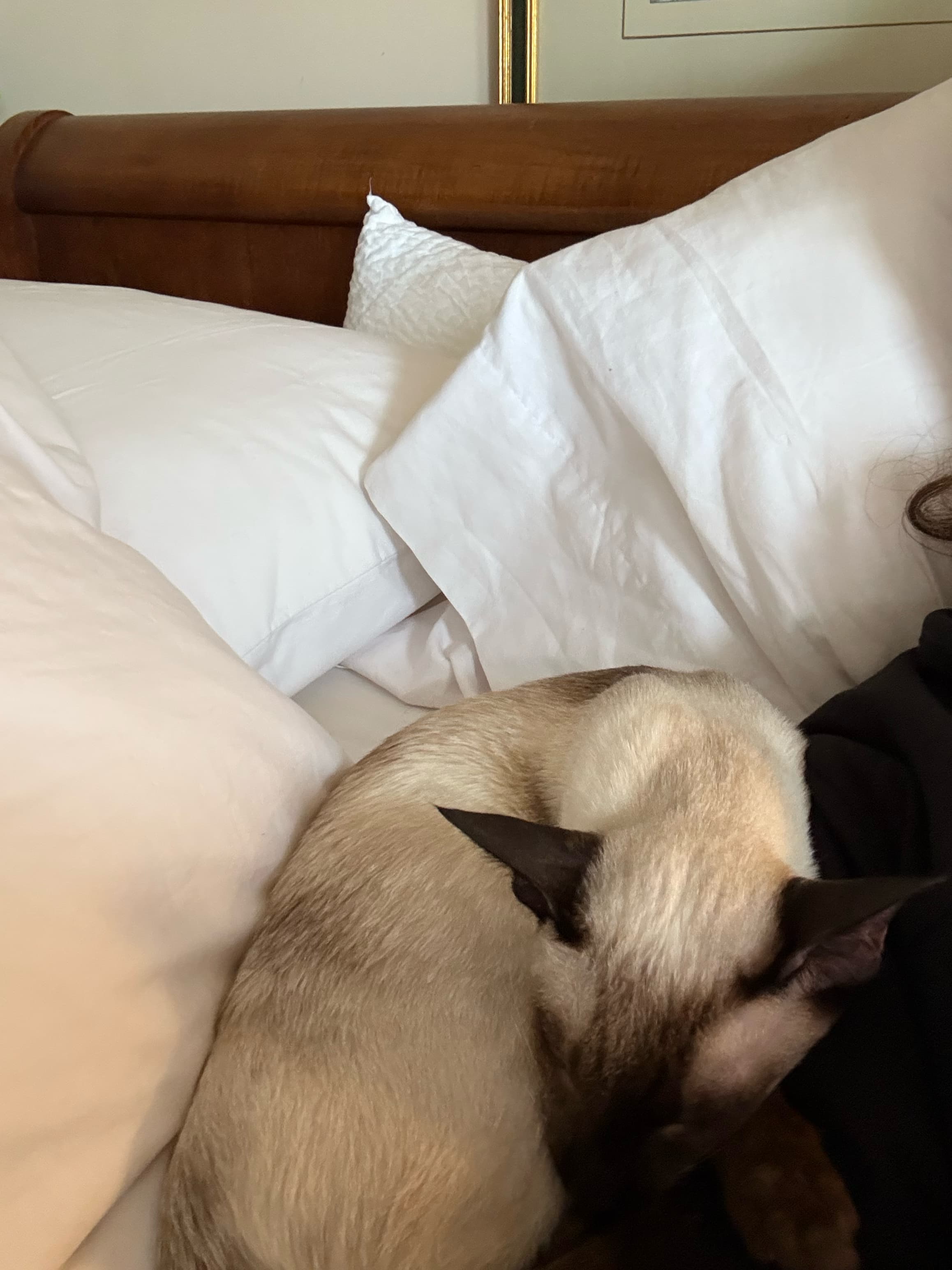Ziggy came into the bedroom today and fell asleep with me for the first time since Mika died. He’s been wandering around making little soft calling noises.