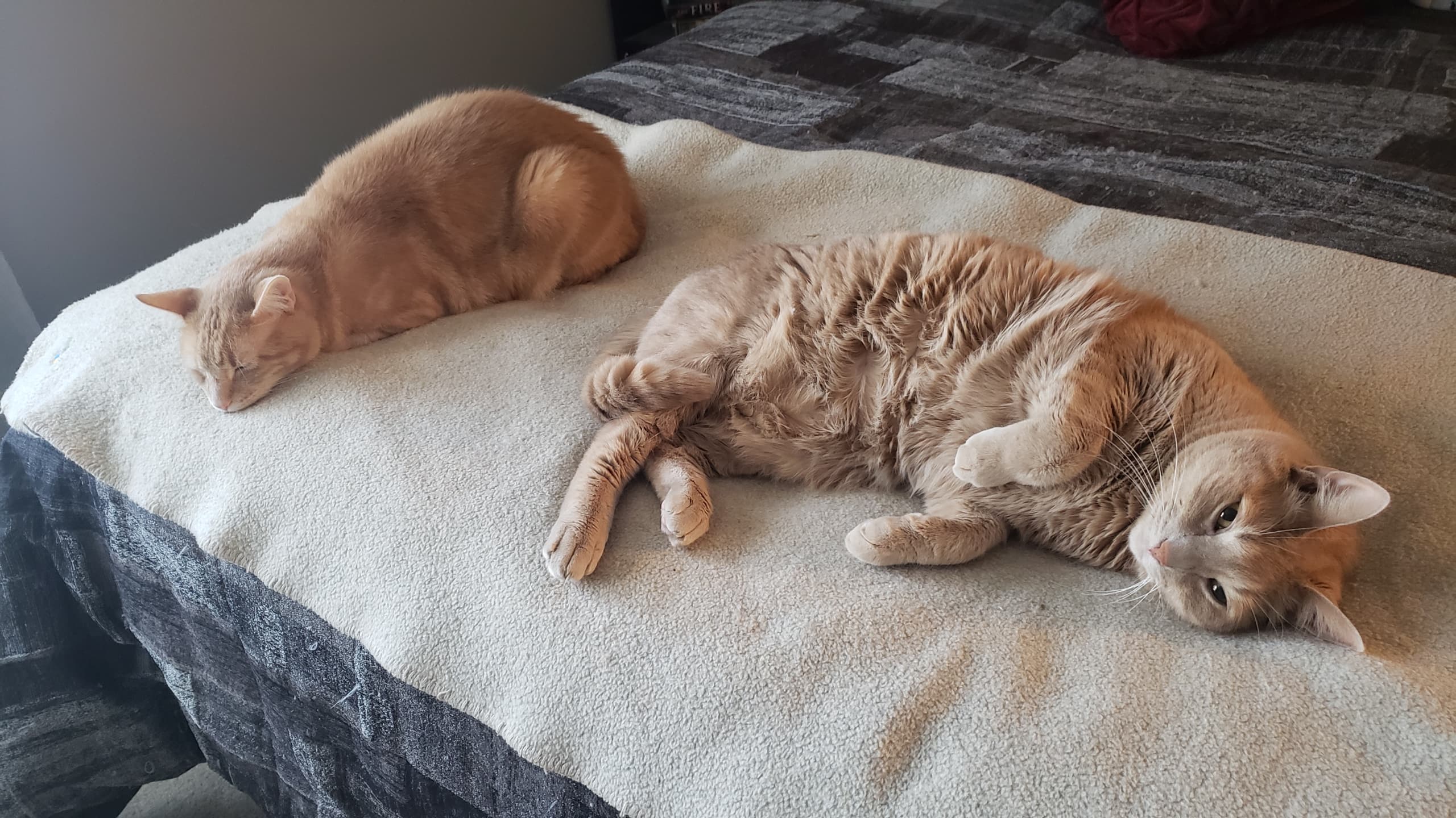 Da boyz and their morning sleepies. Until the zoomies kicked in right after I came downstairs. Now they’re on the back of the couch and behind me on the recliner. Such a life they lead.
