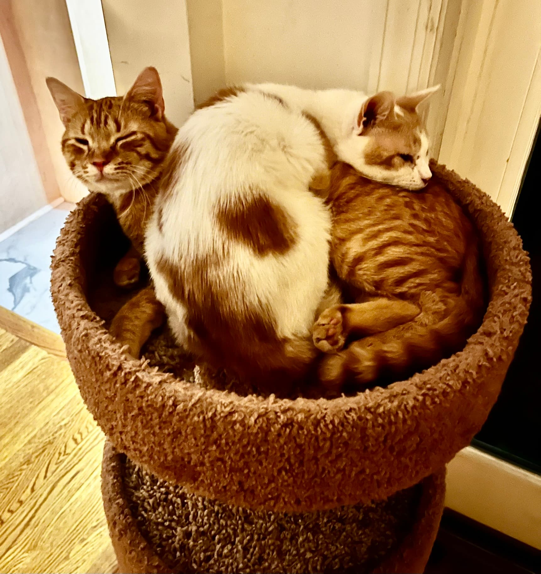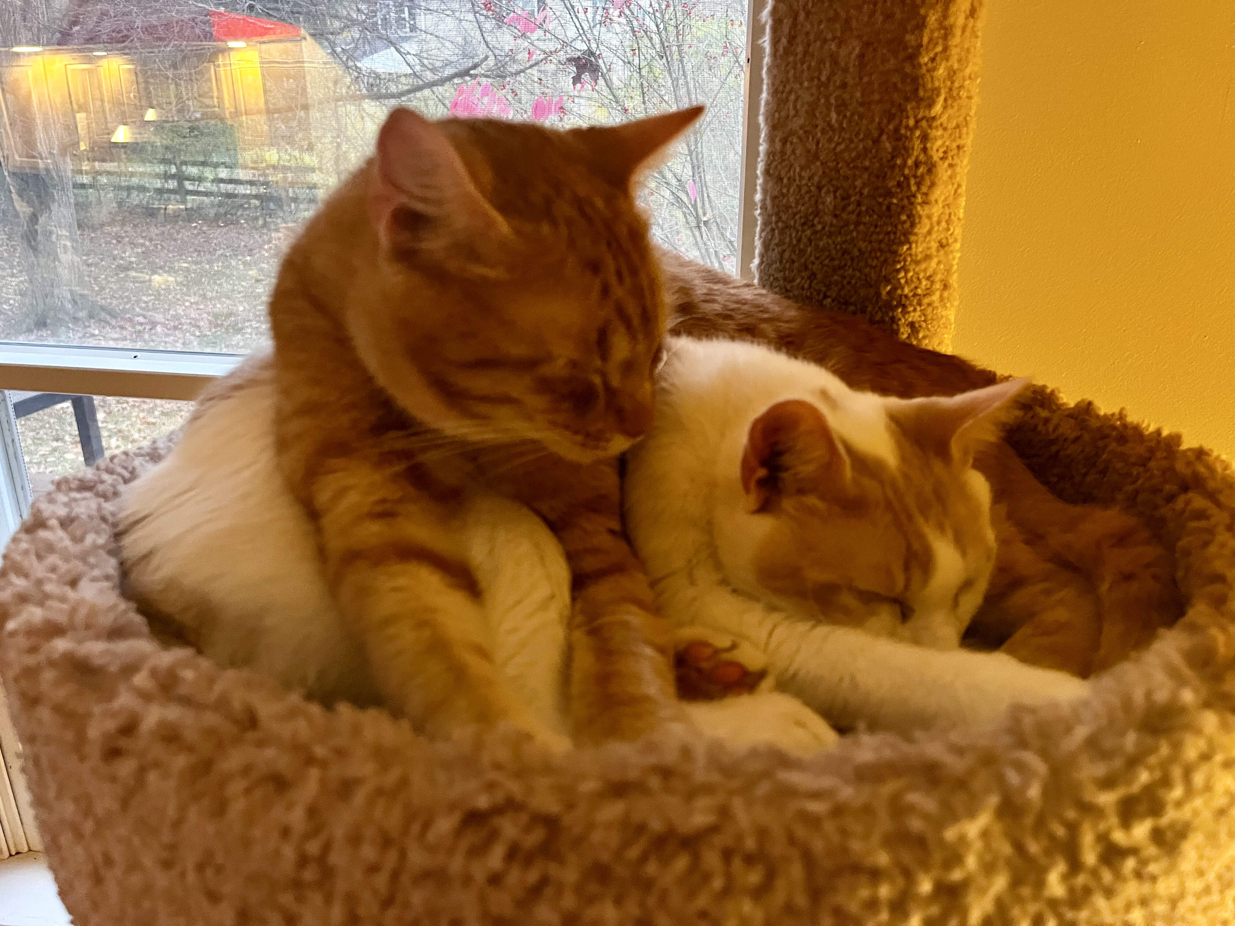 Yes, the pairs that bond all wash each other, but the ultimate cat compliment is when they wash you. I miss getting the occasional cat exfoliation facial. Z doesn’t seem inclined.