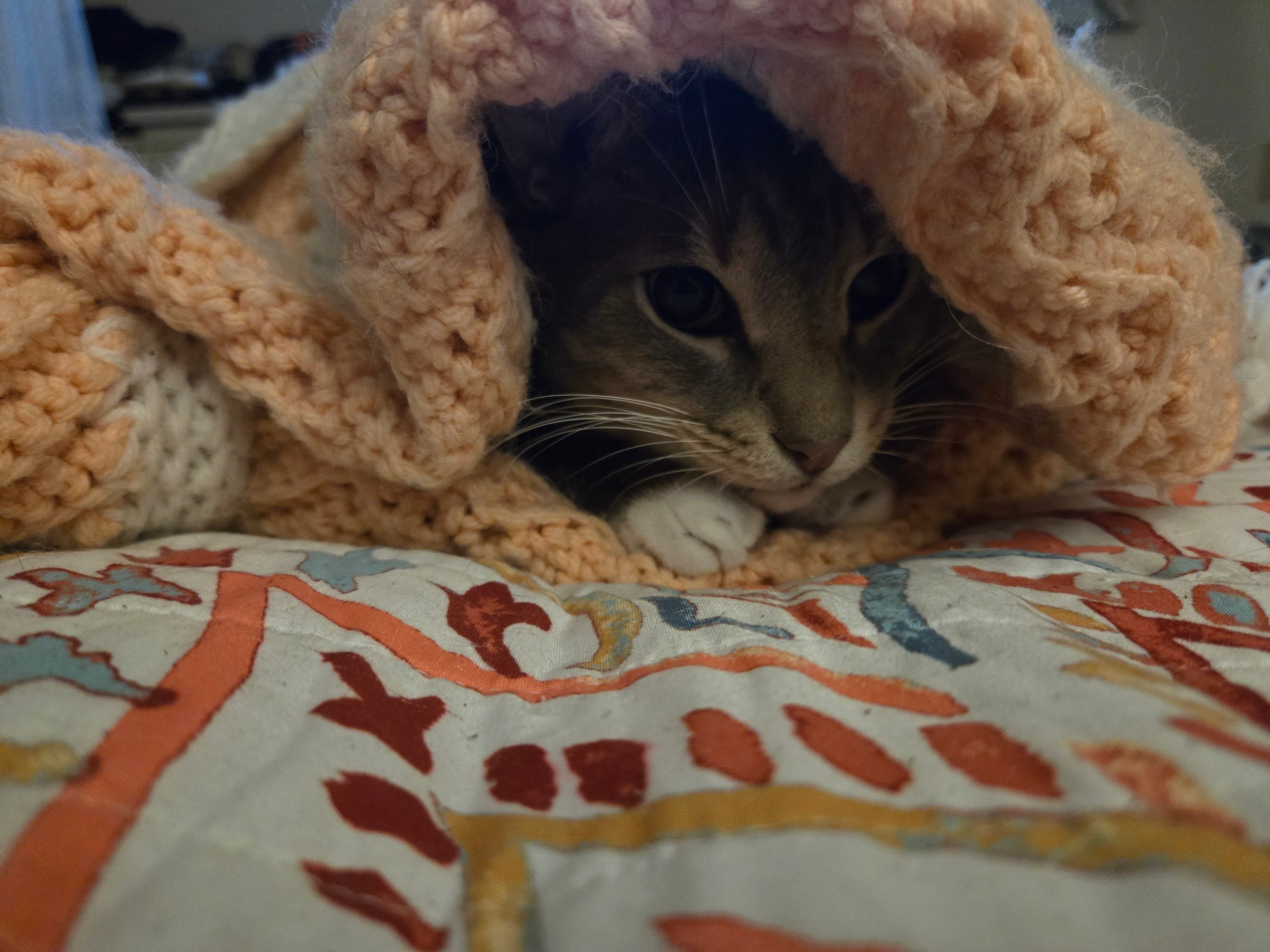 Jonesy likes to lick my fingers and occasionally nibbles on them. I think he might be looking for edibles vs. being lovey-dovey, but it’s cute nonetheless ![]()
