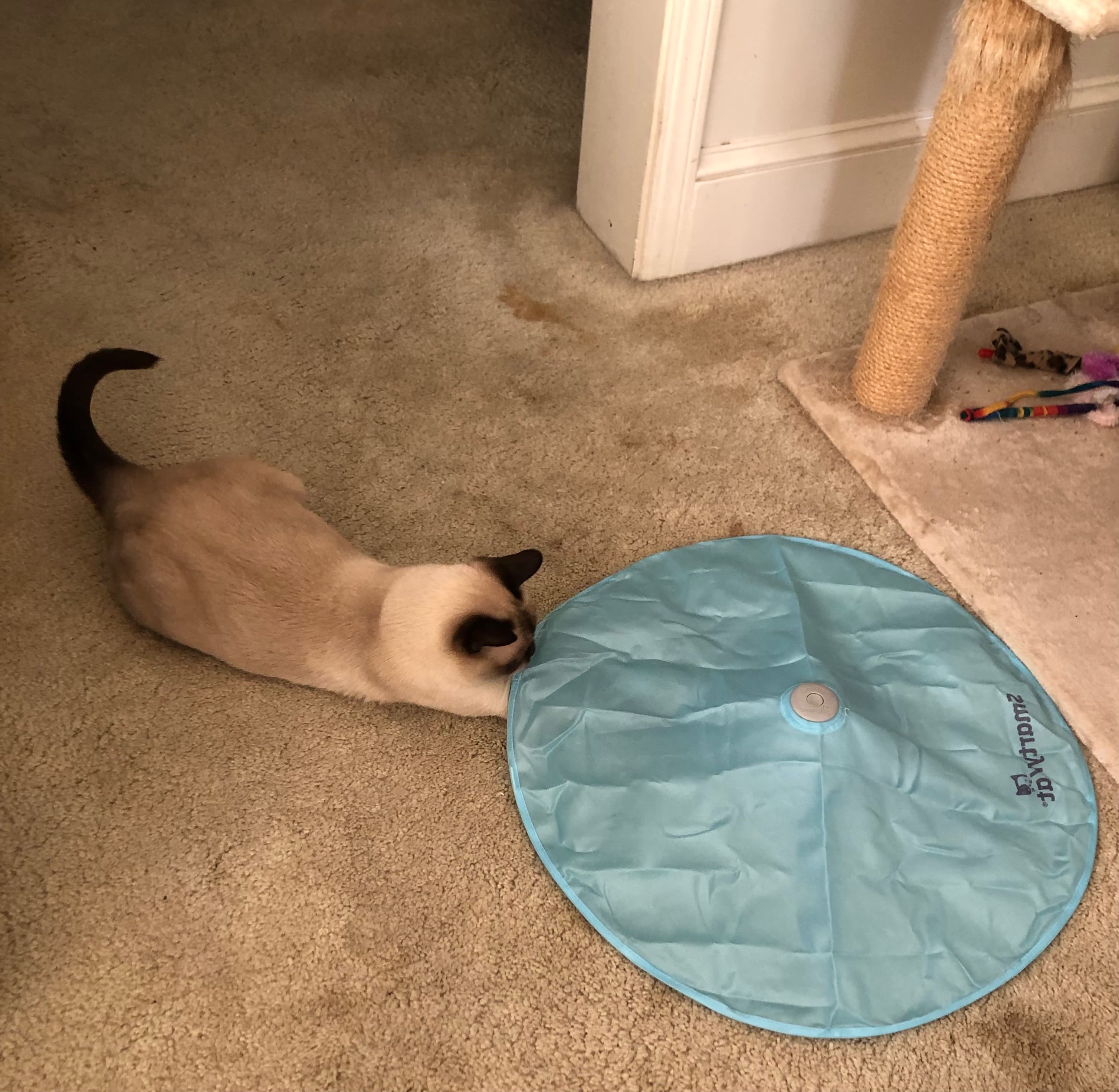 I see people giving things away on Nextdoor because their cats ignore things … I think they just give up too soon.