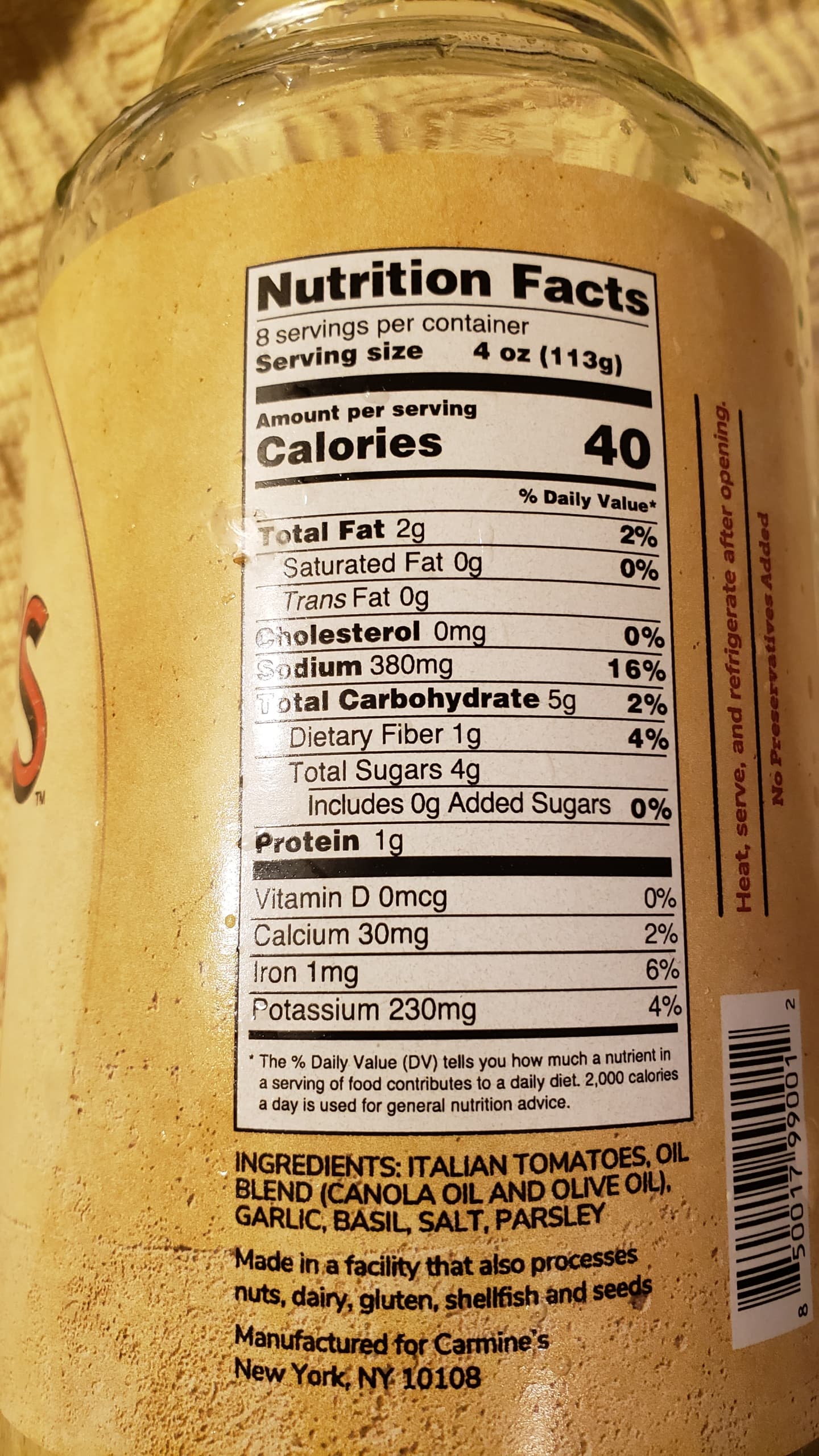 Had also purchased Silver Palate Low Sodium, Carmine’s of NY, Alessi, and Mutti (both marinara and passata).