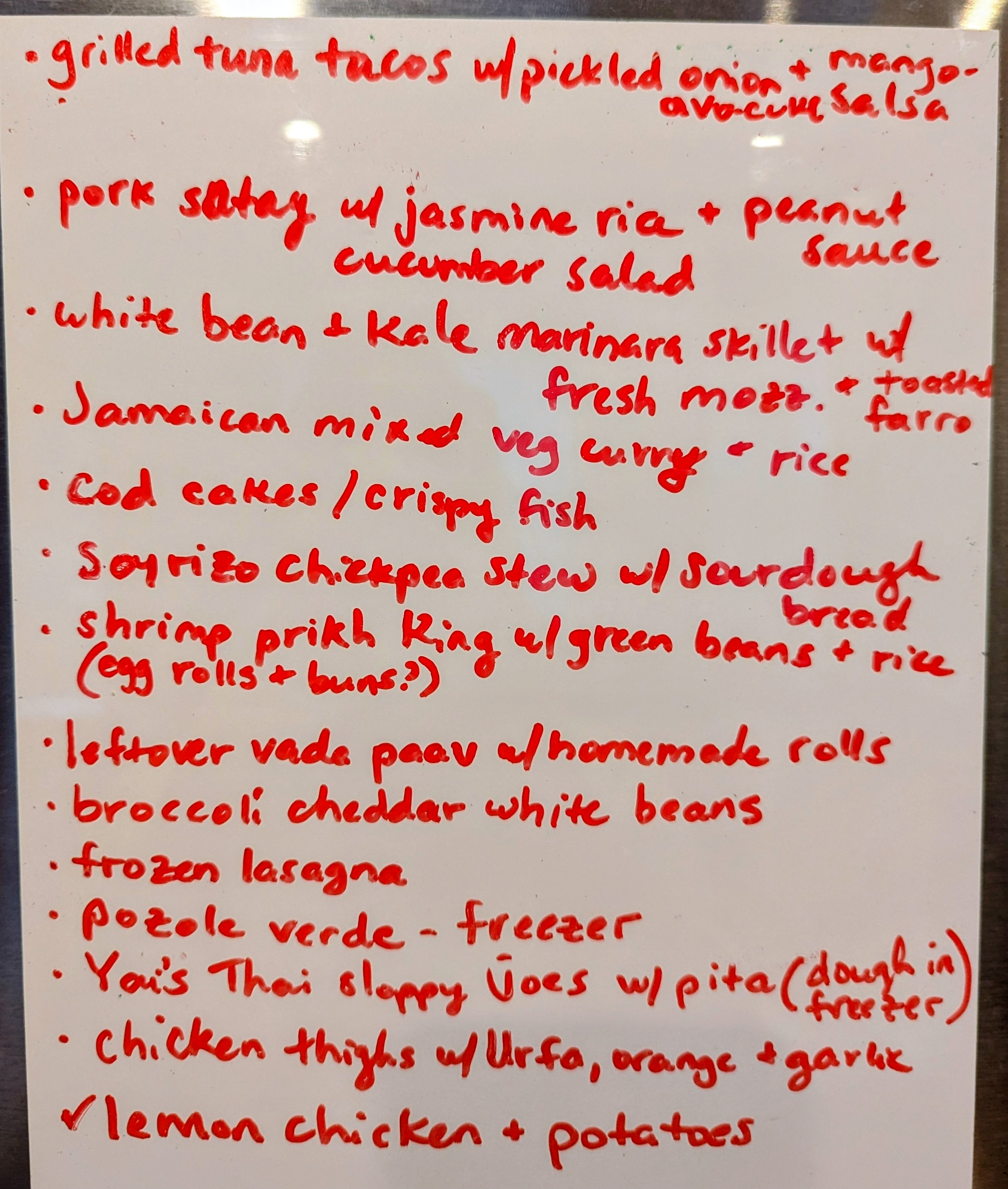 Sat 14: Feeling like Thai take out might be in order. Leftovers make for easy lunches