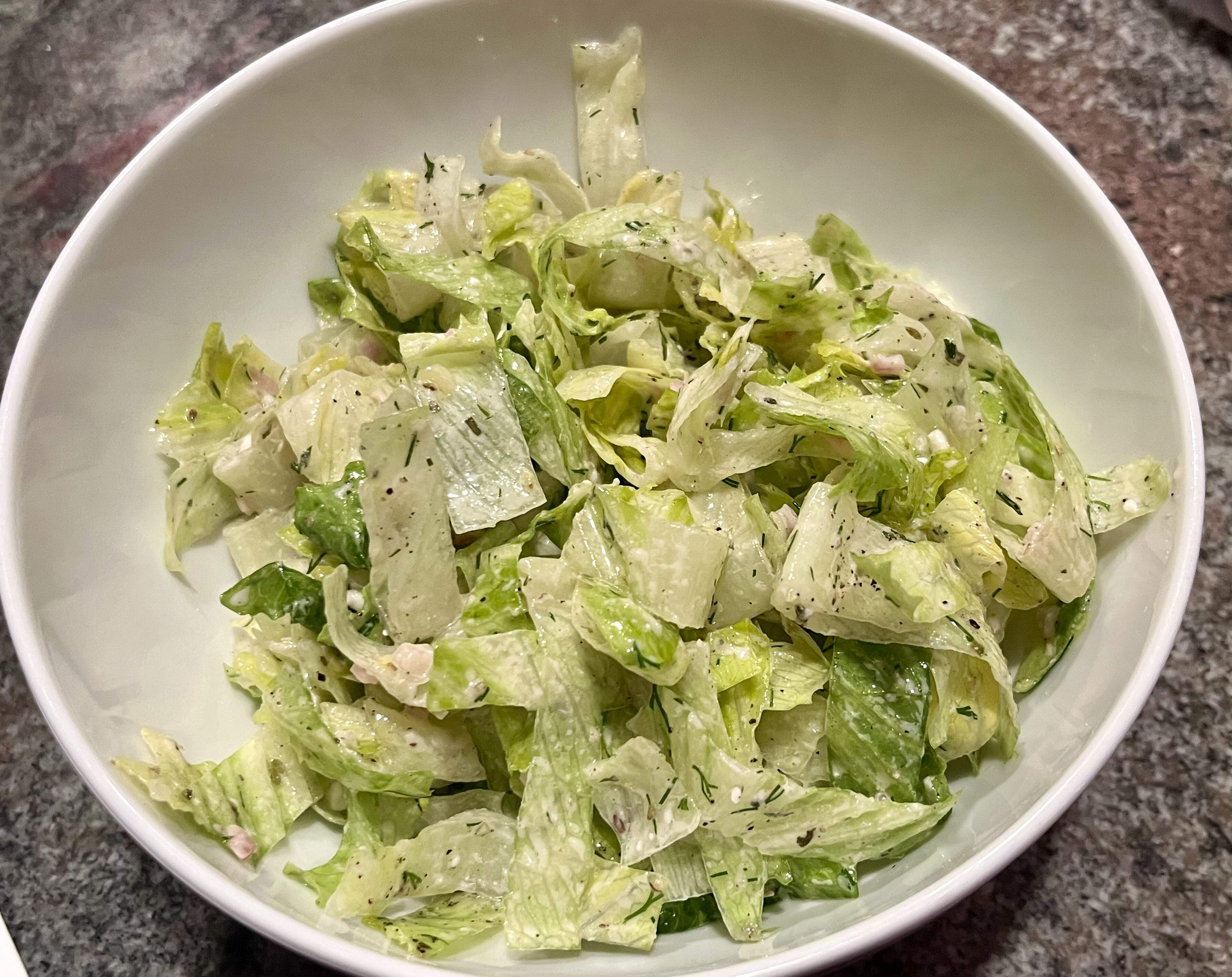 I recently made maroulosalata. It’s usually made with romaine, lemon juice or RWV, olive oil, dill, garlic.