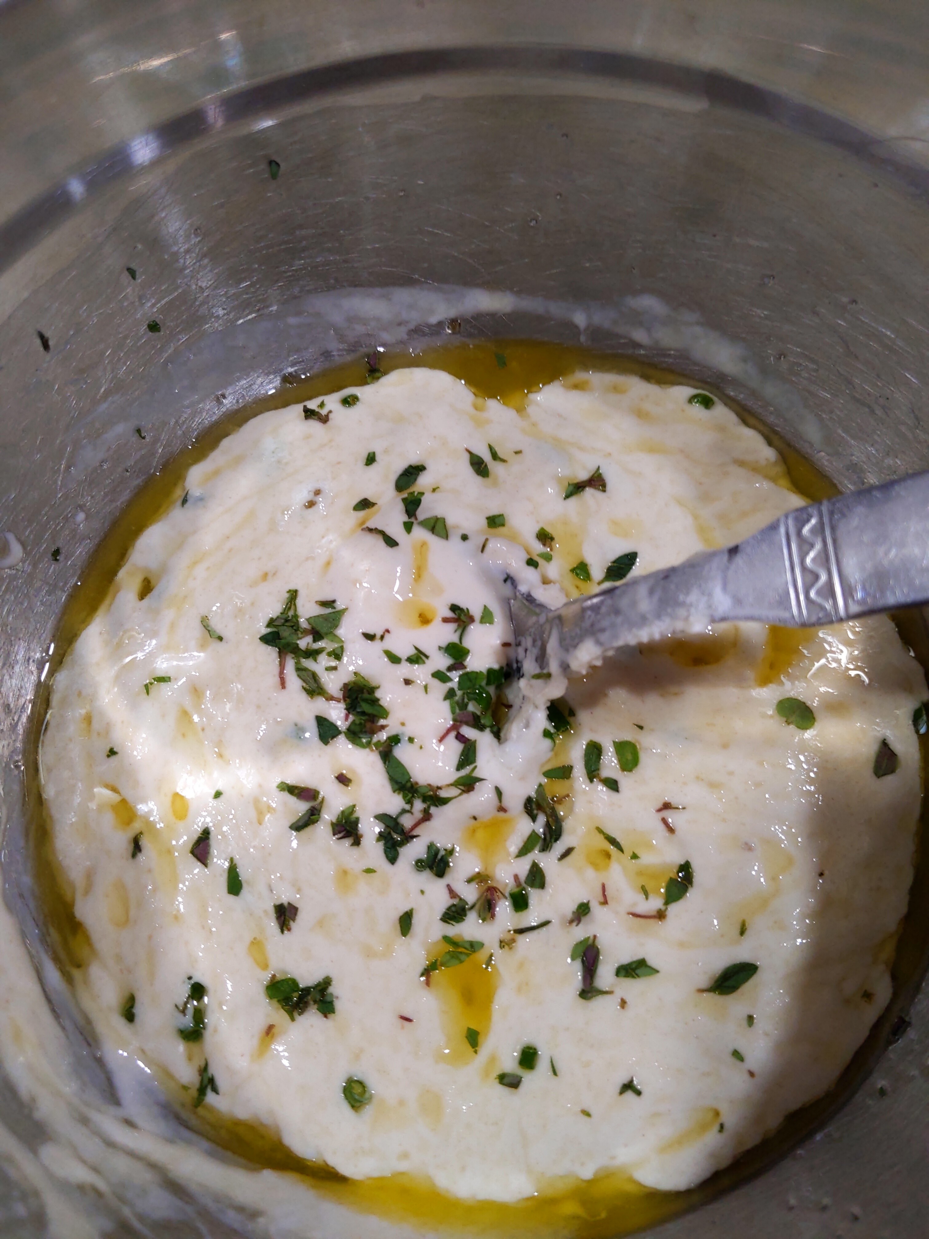 This one had Kalamata, Castelvetrano, black, and pimento-stuffed Spanish olives, plus Jacques Pépin levels of garlic. Smells great when you toast it!