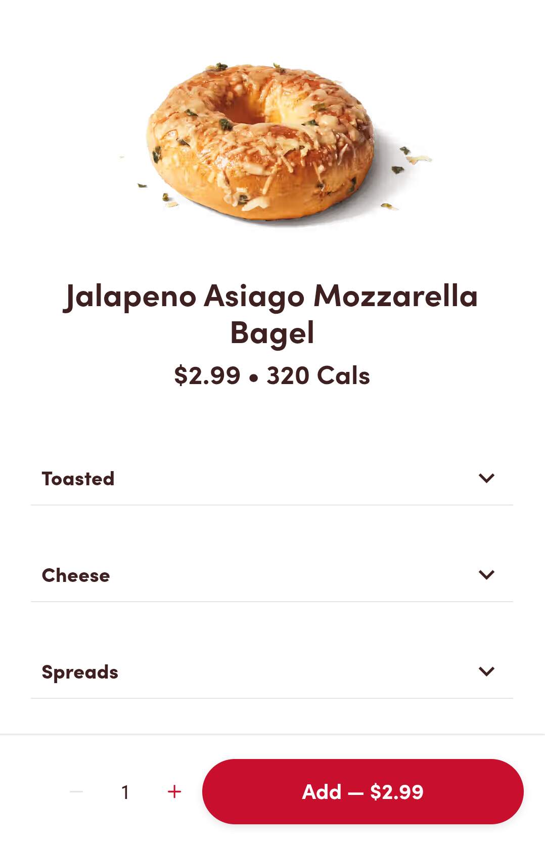 Tim Hortons used to make an Asiago Jalapeño bagel (a bready Bagel that might make traditionalists cry) , which was one of the things I used to order. LOL. It has been taken off the menu.