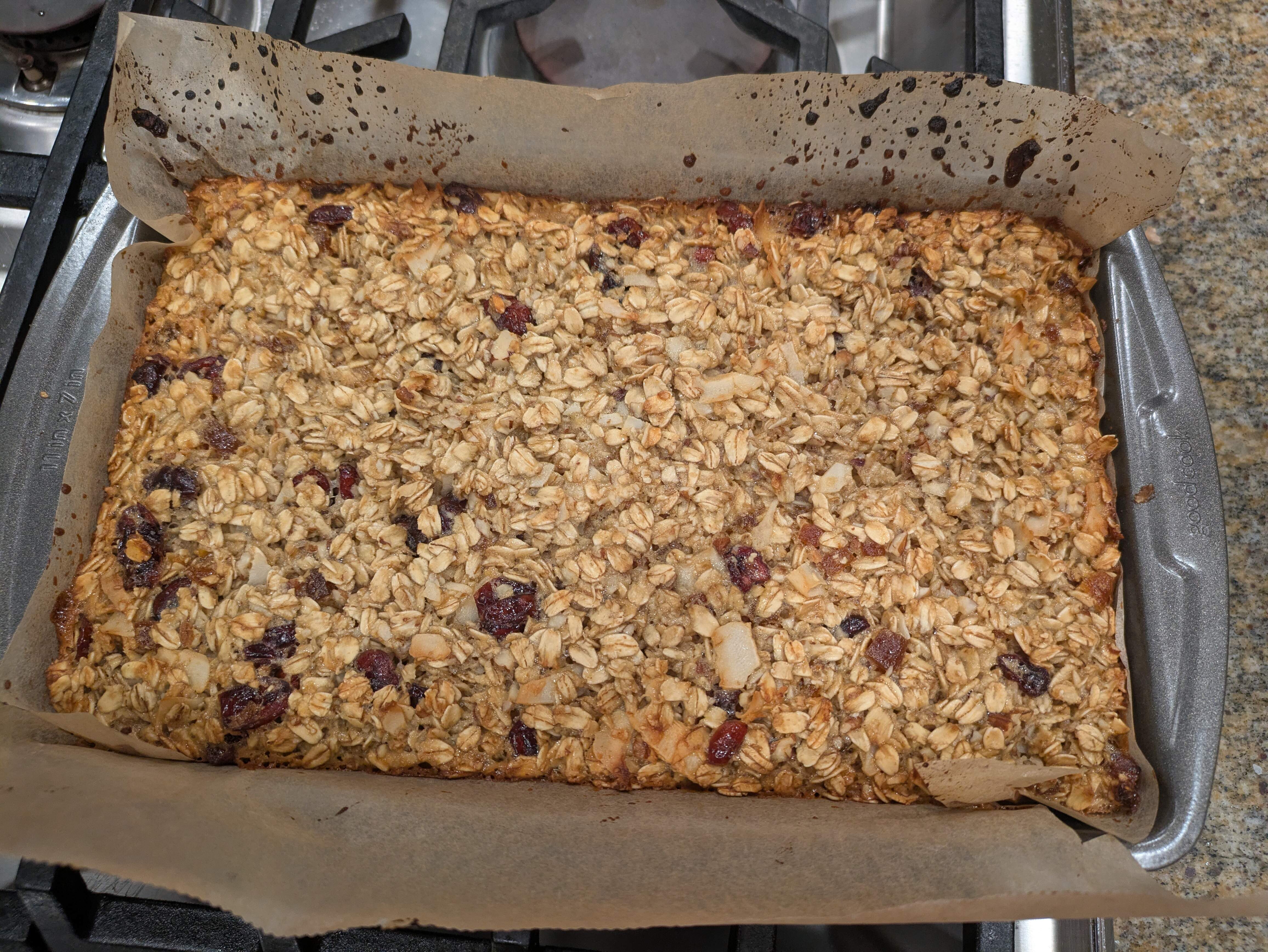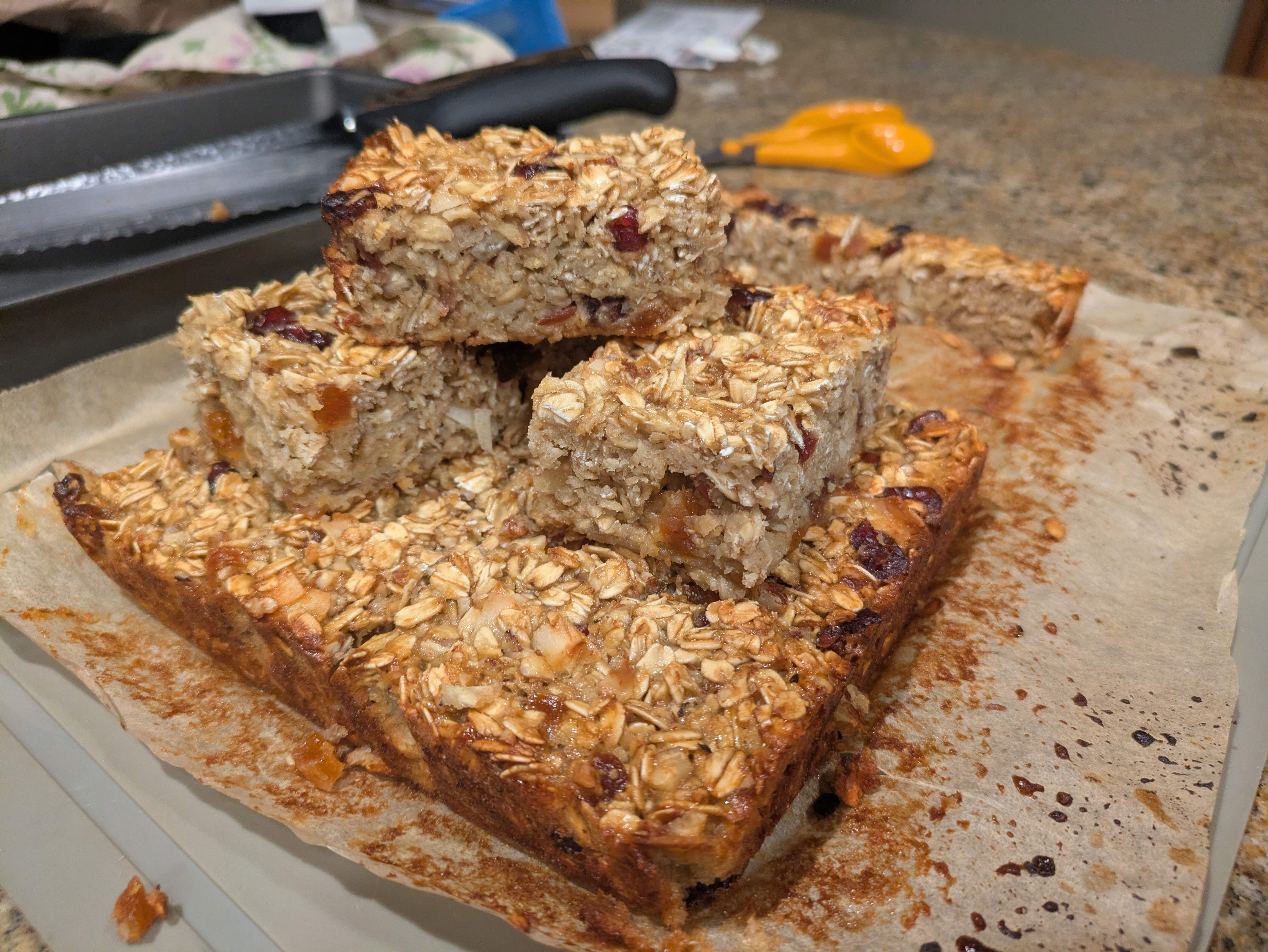 ETA that recipe looks great! I’m thinking about subbing some of the nuts and dried fruit. I have pecans and pepitas, dried nectarines, pears and probably dates. The dried apricots are halfway to becoming “jam”, or maybe a “fruit topping”.