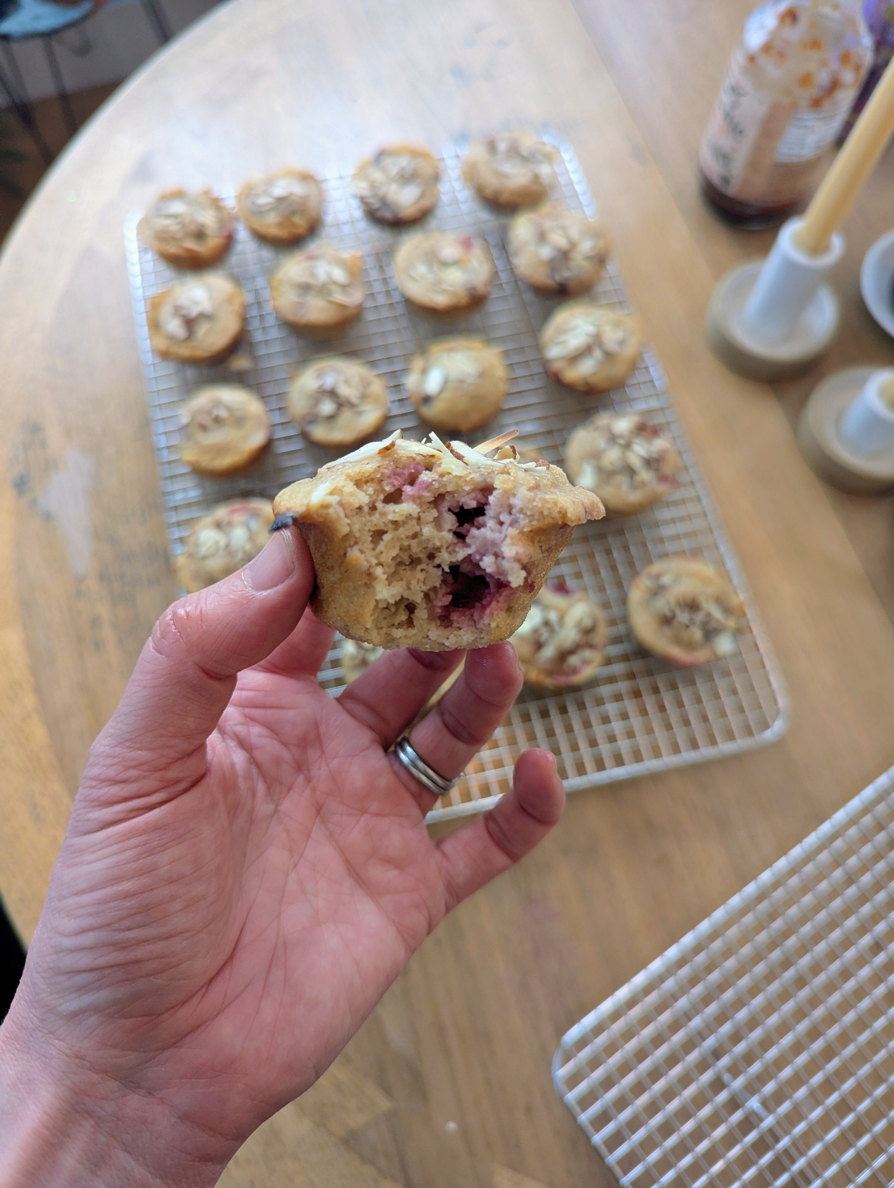 I made lemon blueberry Greek yogurt whole wheat muffins again from yummytoddlerfoods. Subbed diced strawberry and plum for the blueberries and swapped in some almond flour. Really moist and yummy.