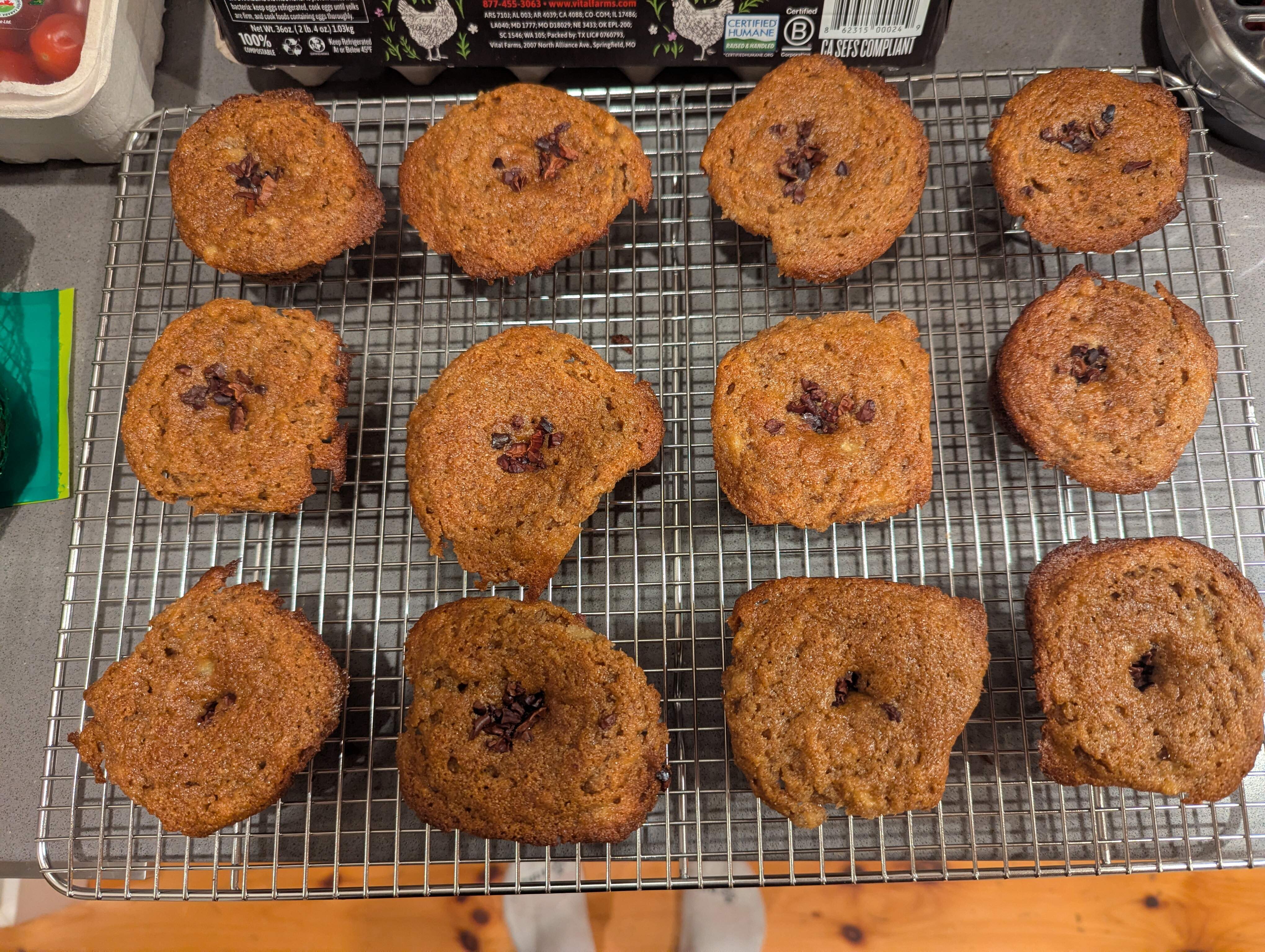 I really liked these, too! My muffin tin cups are petite and evidently I overfilled them (thinking they’d stay quite flat as the headnote mentions). Oh well. They taste fantastic. I followed the recipe except for using 1% plain yogurt instead of whole. They’re so tender! I liked the cacao nibs on top and am tempted to reduce the sugar and use dark chocolate chips.