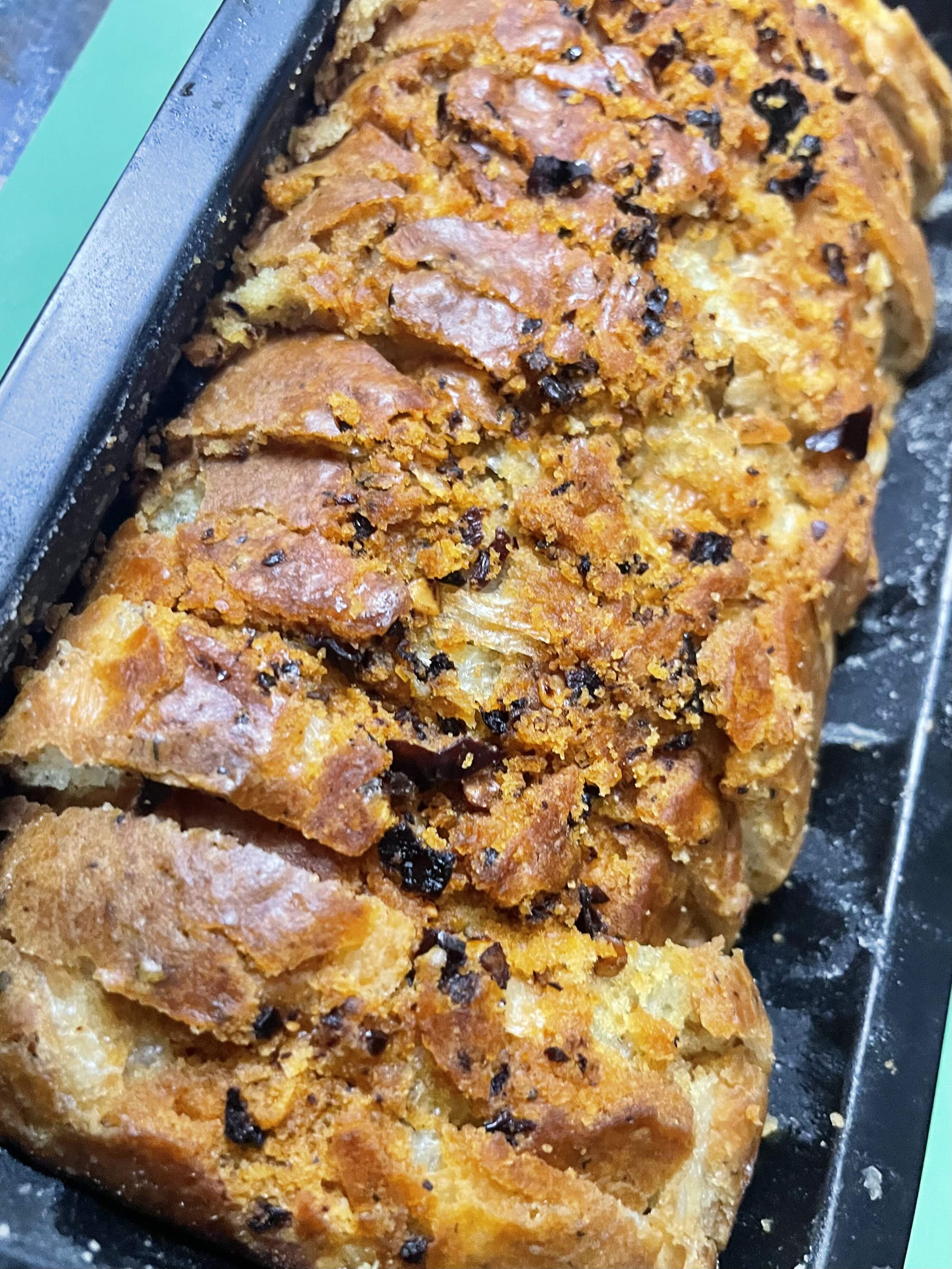 Cheddar Cheese Apero Bread with Chilli Crisp (chilli crisp idea courtesy my sib, when I was musing aloud that chilli flakes might add some oomph)