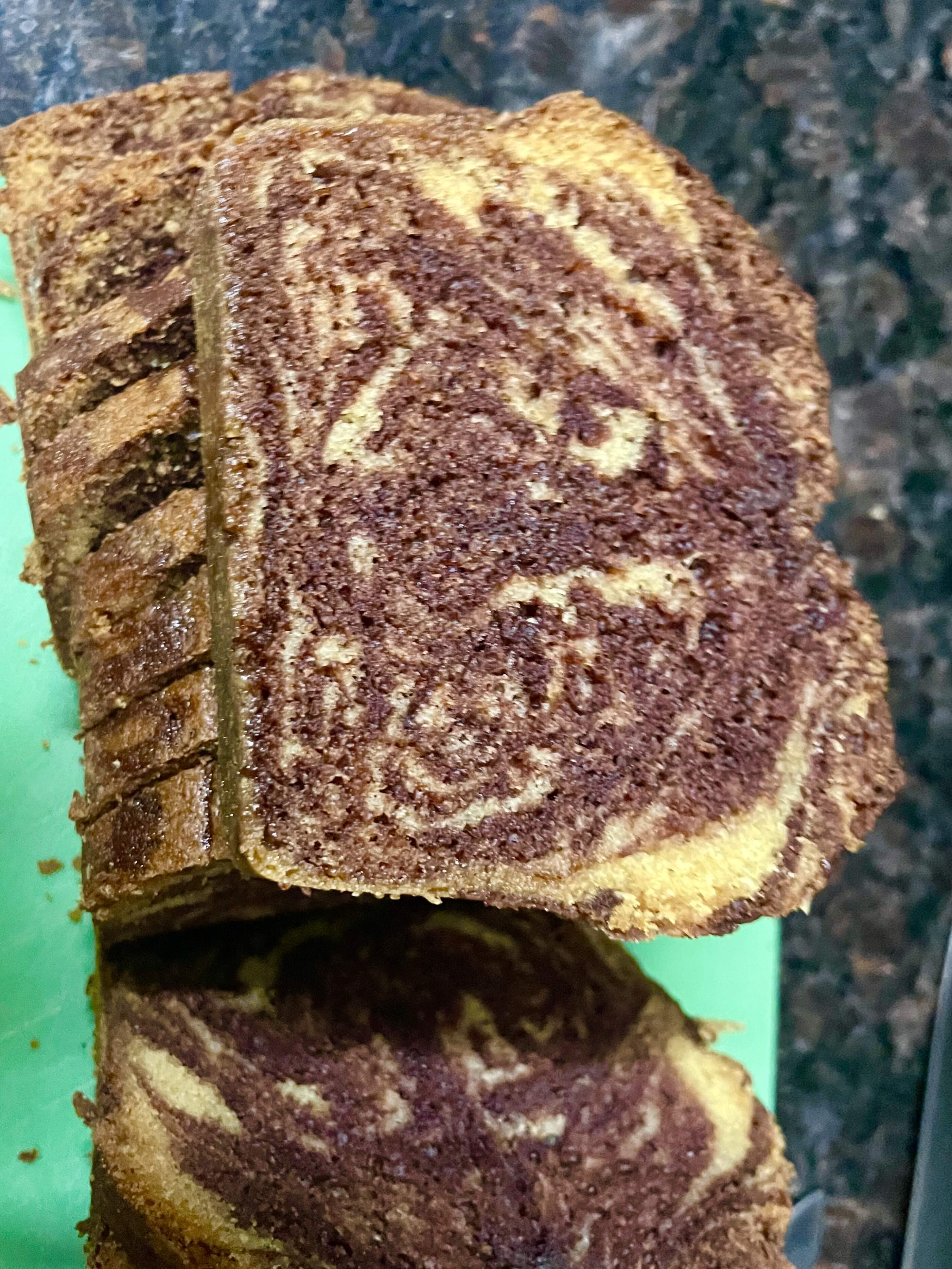 Marble Cake (was supposed to be tiger cake but the batter was mysteriously thin for the first time, so now it is what it is