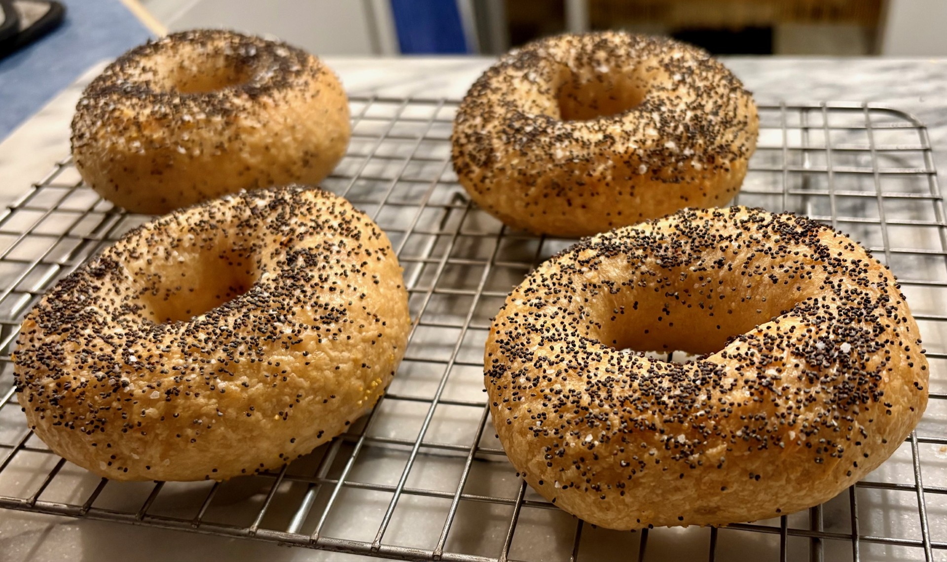 I’ve been struggling with the onions on an Everything bagel scorching before the bagel puts on much color. For this version, I worked the toasted dehydrated onions (and a pinch of garlic) into the dough, and then topped with poppy seeds and salt. The aroma and flavor of the onion really came through, and the poppyseeds gave everything a nice crunch. This version is a keeper.