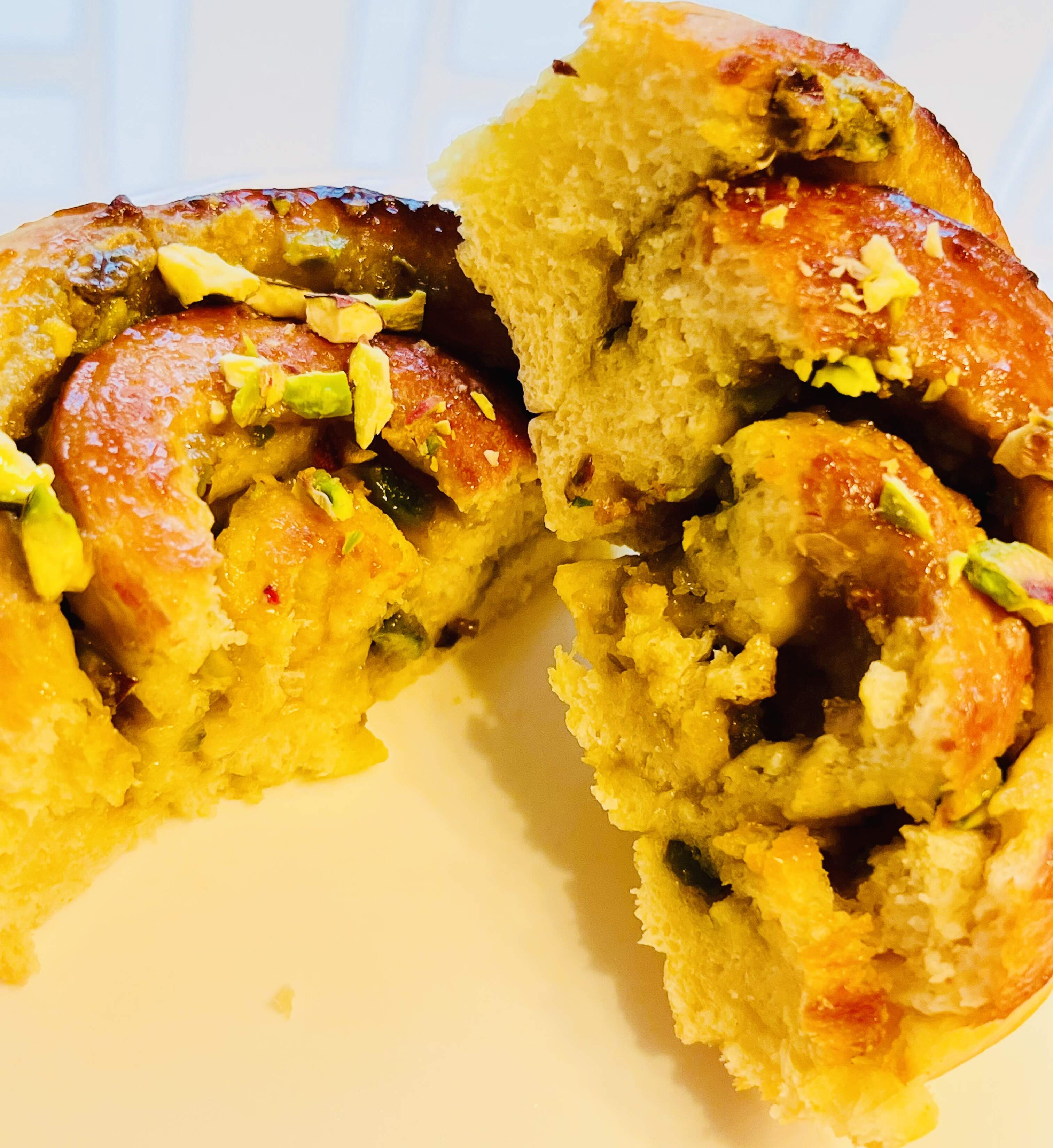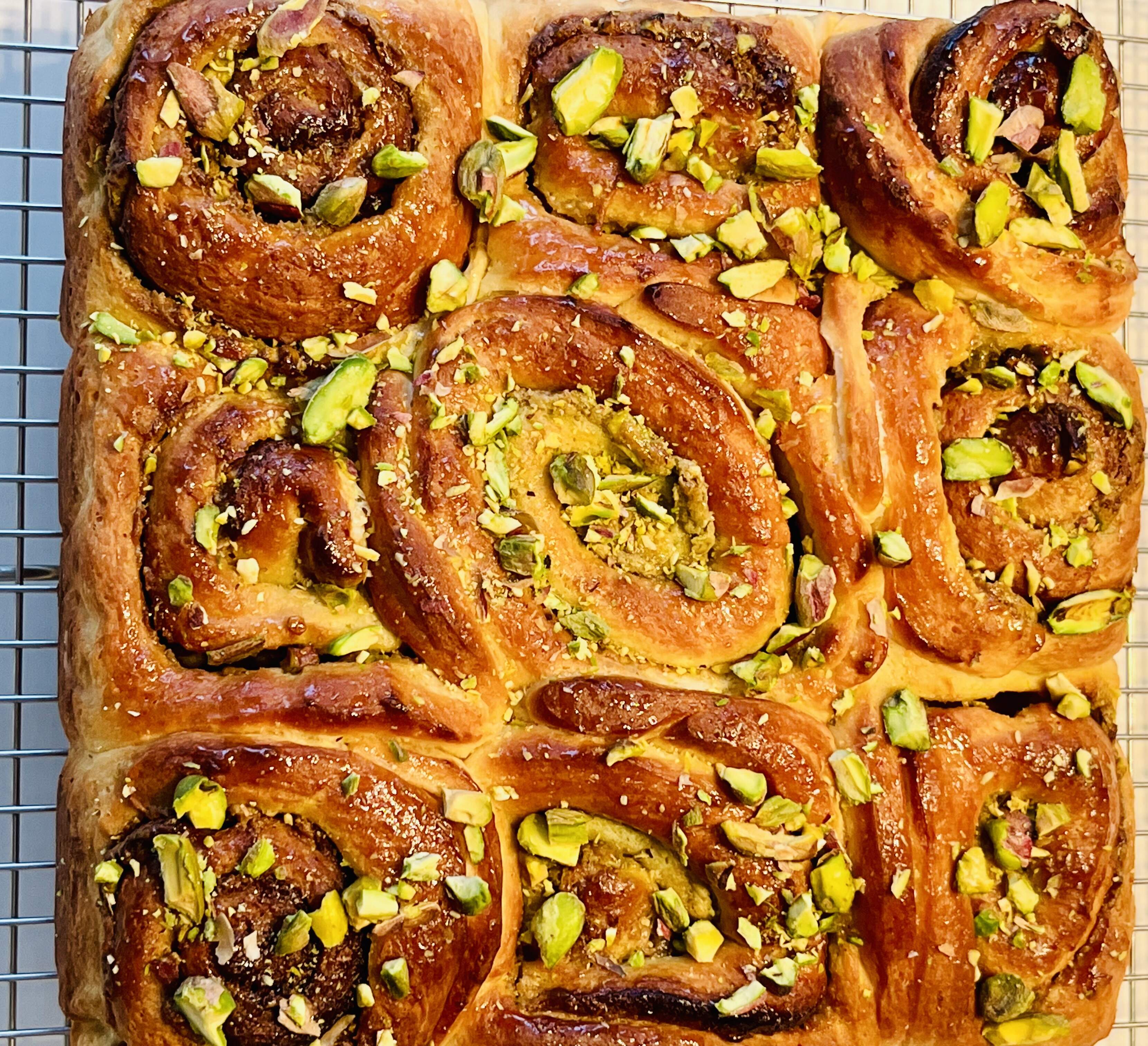 Mostly from the “Turkuaz Kitchen” with one exception , the filling. Baked to 185* at 350*. The single roll was baked separately and was the cook’s treat.