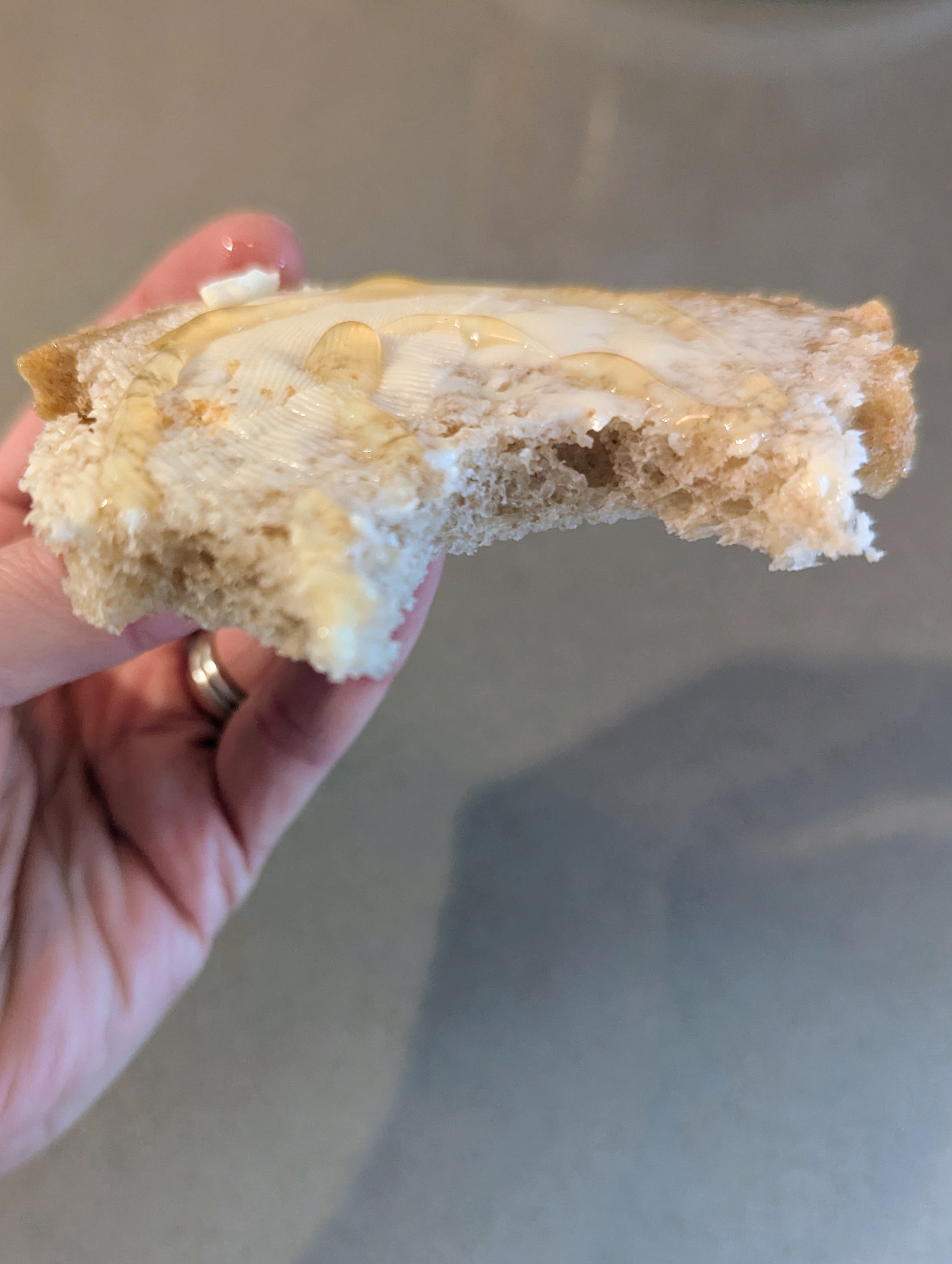 I’d definitely make this again. (My DH buttered this slice – I’m way more miserly with the saturated fat