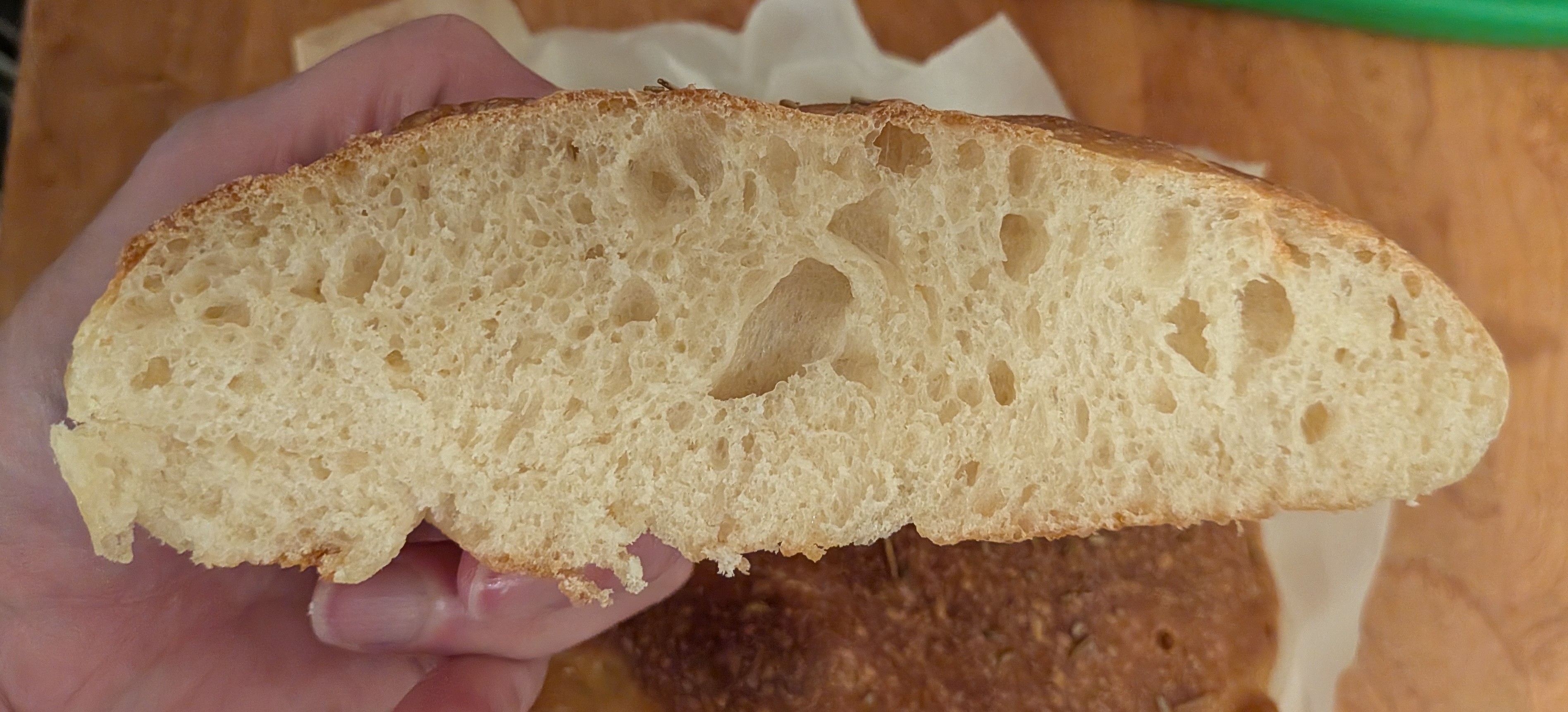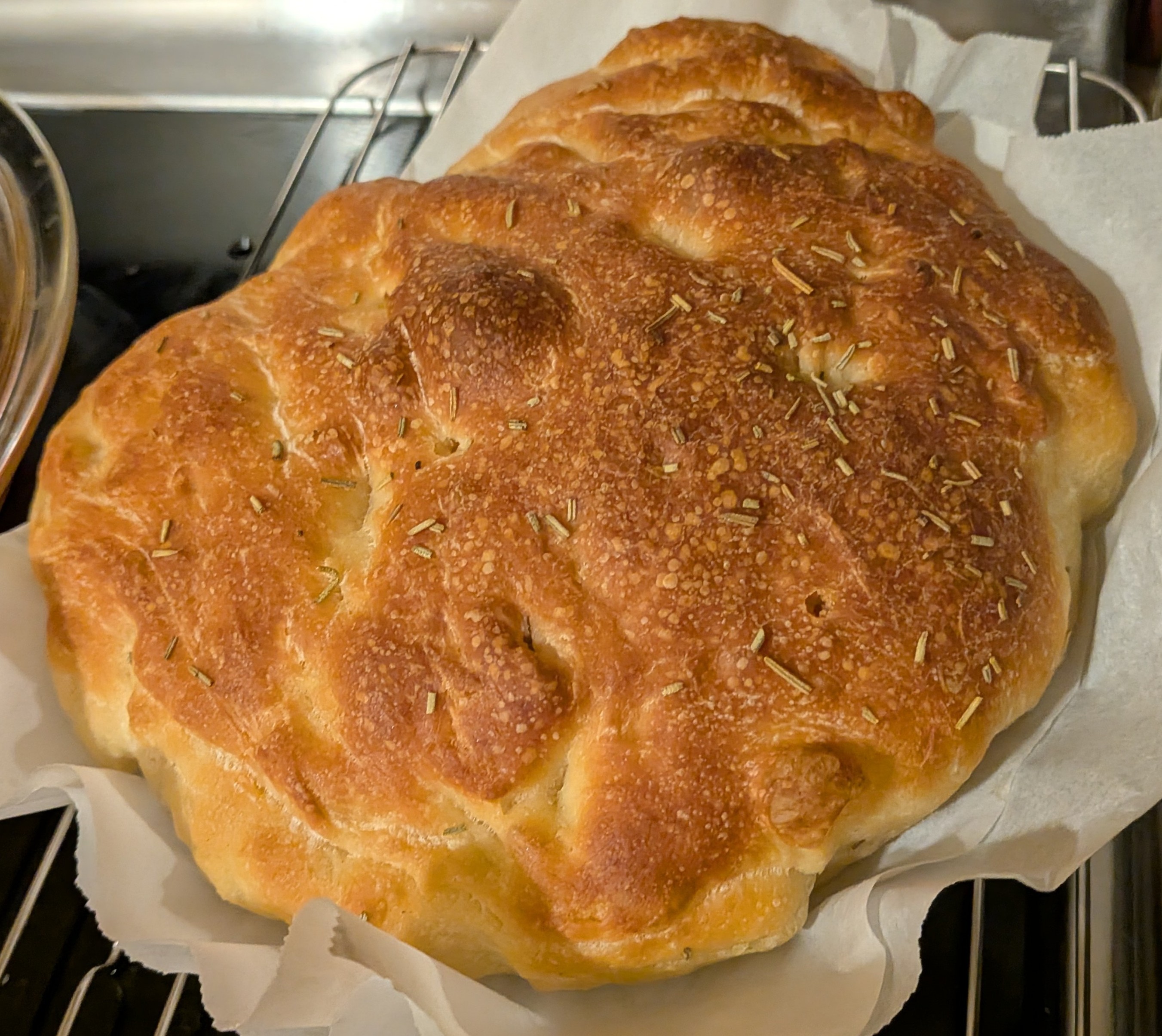 I made a Focaccia- type thing with 2/3 of the remaining dough I had, letting it sit at room temp for 3 h, then baking at 460⁰F for 15 minutes, until the internal temp was 208⁰F.