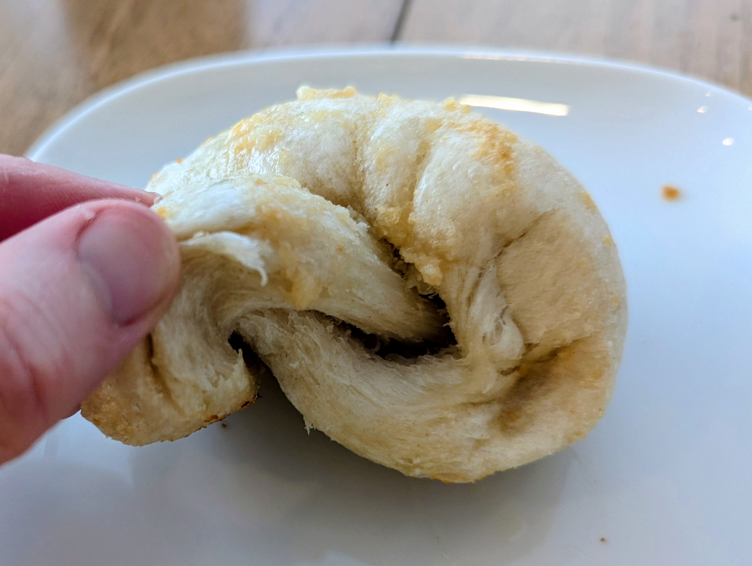 Yesterday the kiddo and I made ATK’s food-processor pizza dough (@rosyred compound adjective alert) as a sensory reset. After an overnight rest we twisted up some bread knots with fresh, roasted, and granulated-garlic butter. He had his with pizza sauce for dipping. Really good dough – nice gluten formation and soft.