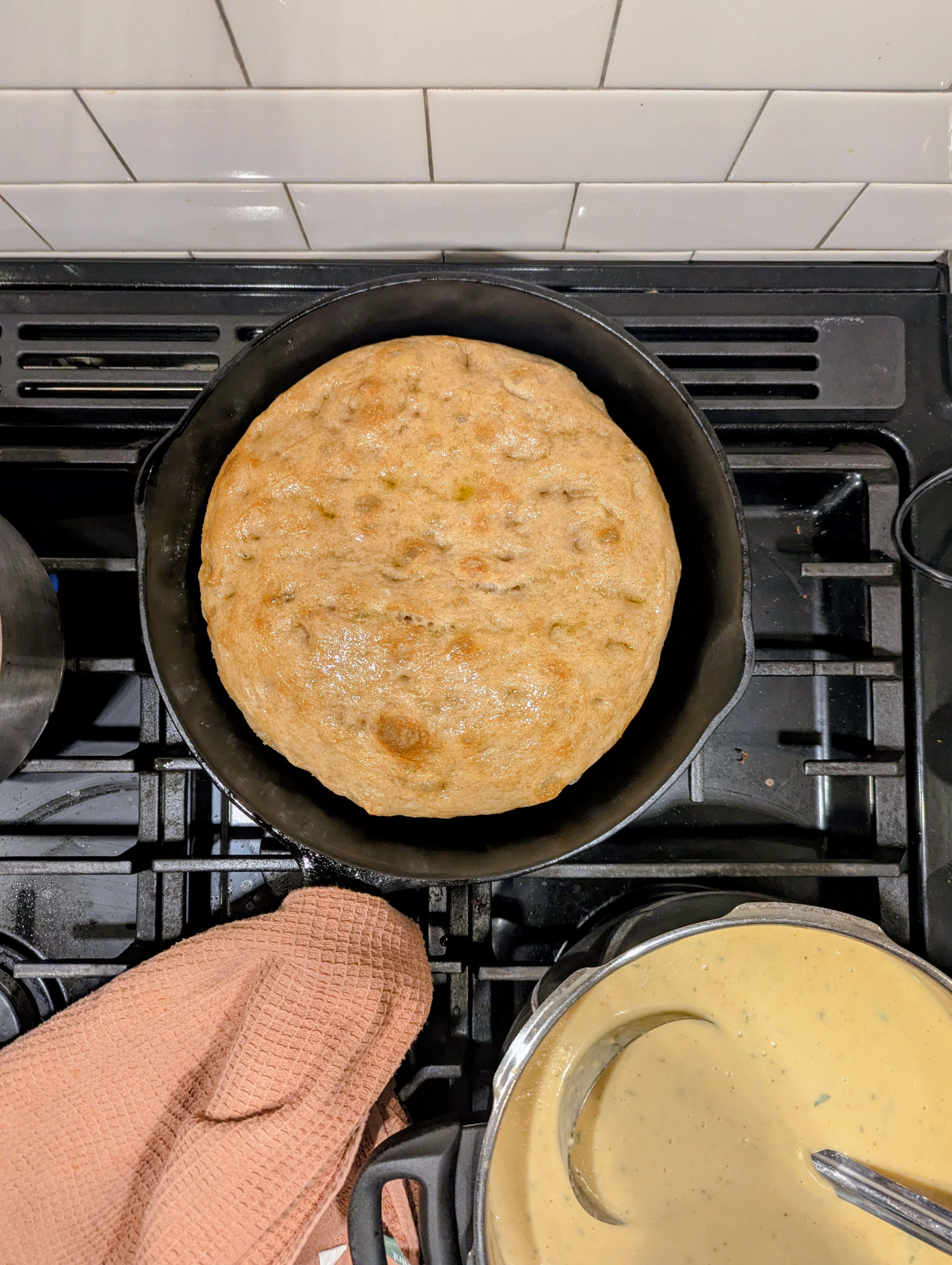 @small_h had shared a sourdough discard recipe that I tried tonight with dinner. It turned out great! Really easy. Could be that I should have degassed the dough more but I wanted it to be super fluffy. Everyone liked it. I substituted a little whole wheat flour for a tiny bit of the white. Just made a half recipe in my cast iron.