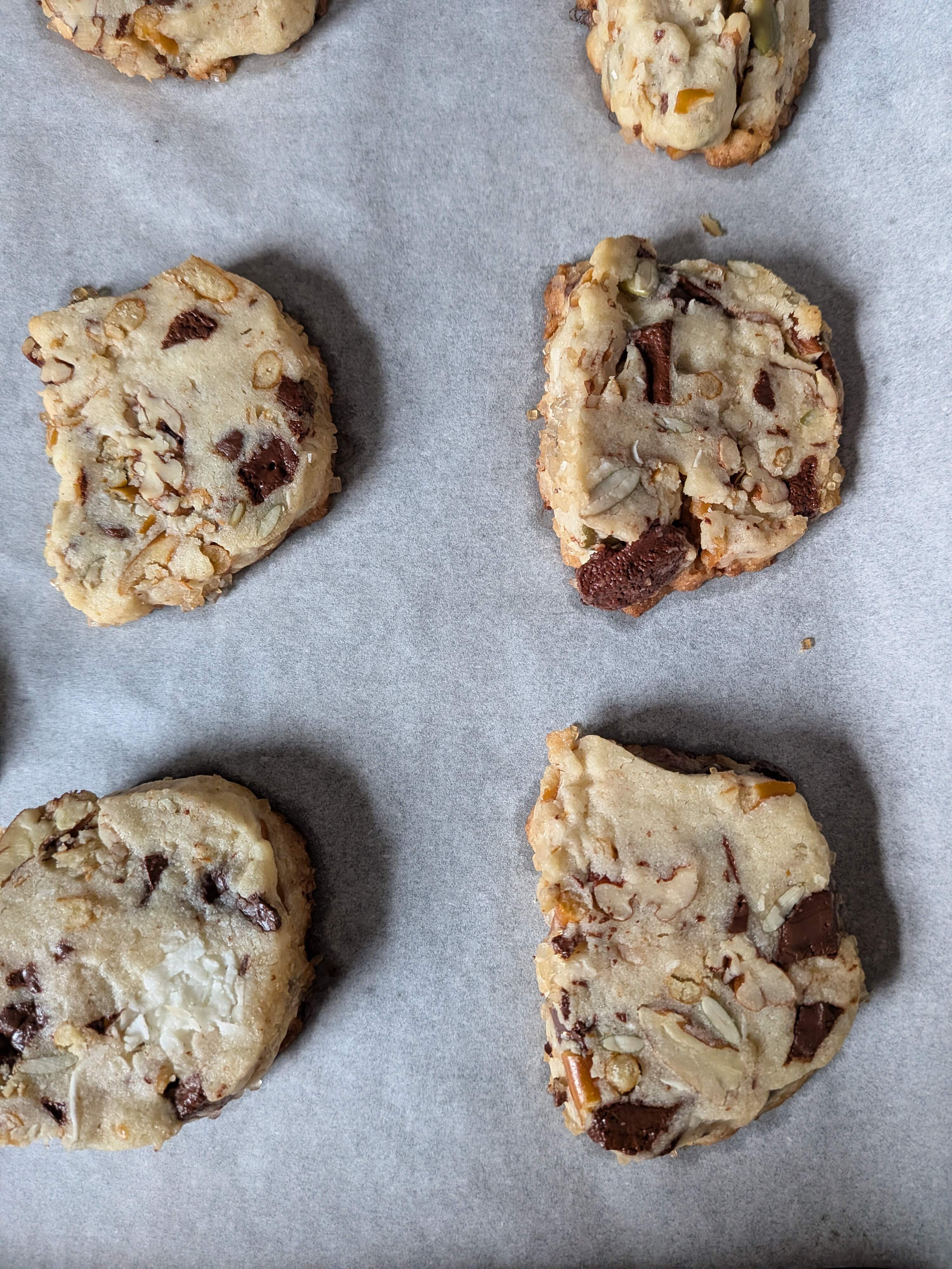 More baking to use up xmas leftover ingredients ( in this case pretzels and pecans). Claire Saffitz all-in one shortbread. In addition to the ingredients above, it also used flaked coconut, pepitas and diced chocolate. Looks like it turned out well this year..