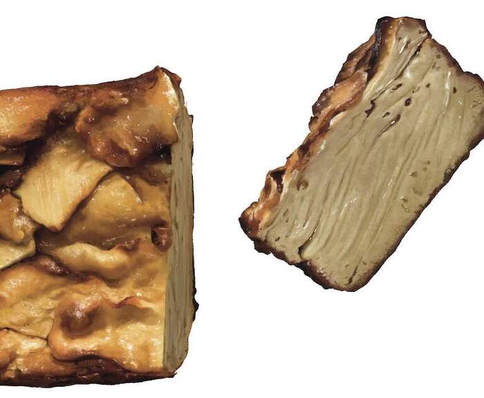 Bit more on the rustic side. These are thick flatbreads that I like to bake in the winter months, optimized for dipping in soups, stews, etc. 80% hydration sourdough, 55% whole wheat, 15% rye, 4% olive oil. 24 hour retard, then portioned and balled (600g per ball) and left on the counter to proof for 6 hours, along with plenty of rice flour – the dough is very sticky. Every once in a while as they proof I come by and gently shape them flatter, trying my best to not pop too many bubbles. When finished I try to get them to about 14 inches in diameter.