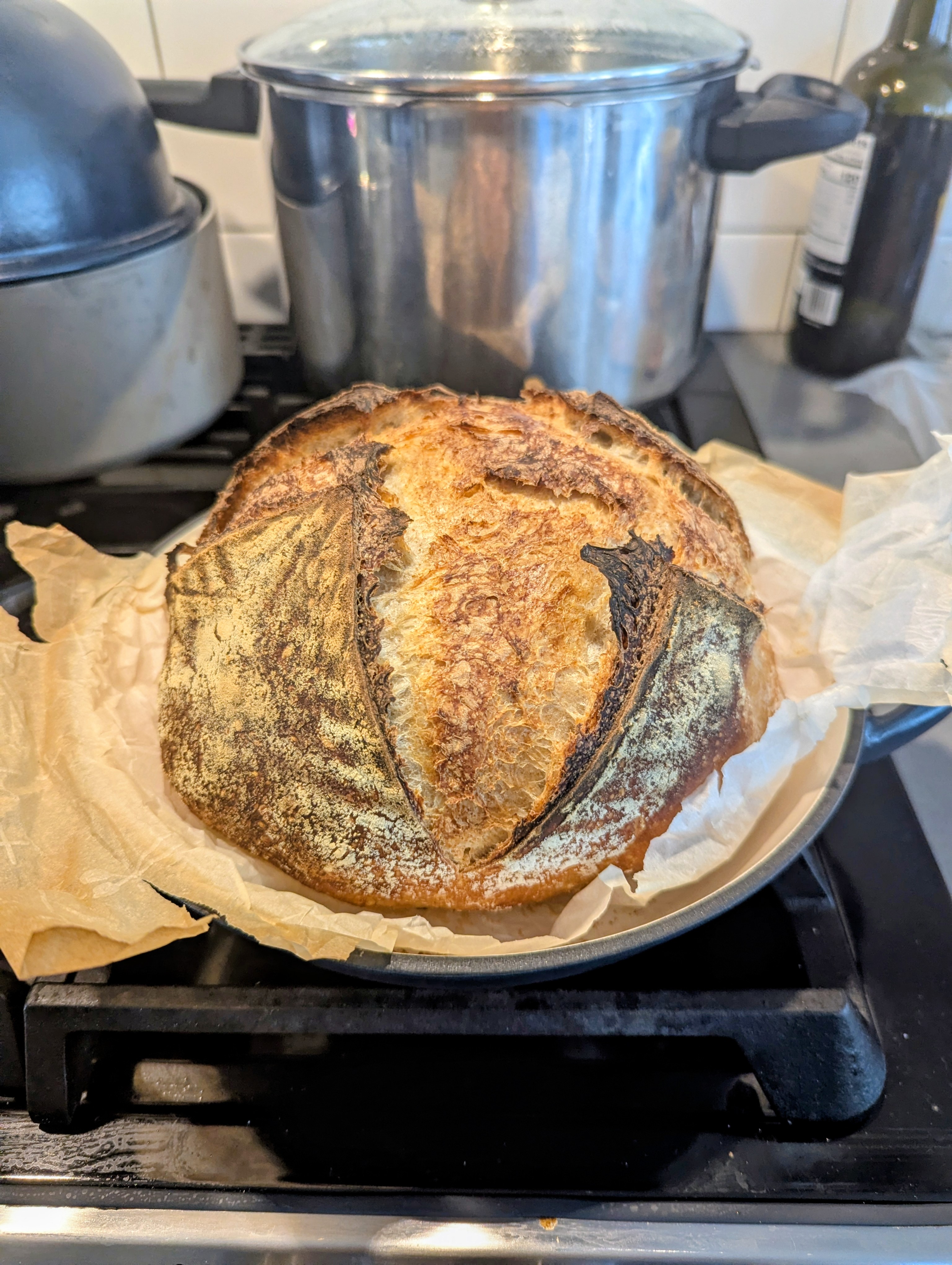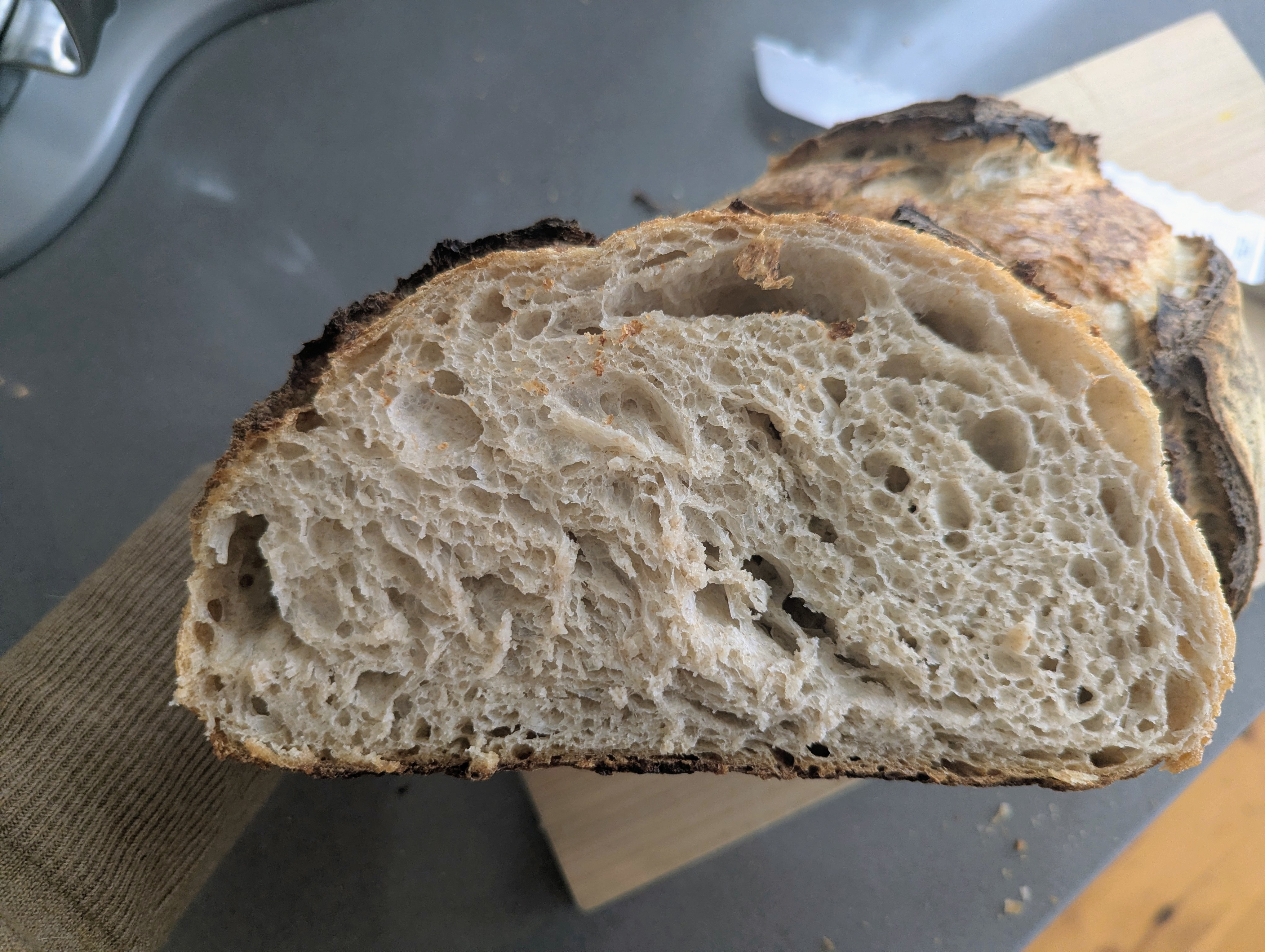 Another day, another sourdough. Extremely happy with this one. The texture is light and fluffy inside. I baked it higher in the oven and covered slightly longer, and the crust seems a bit softer. Shaping could have been a little better