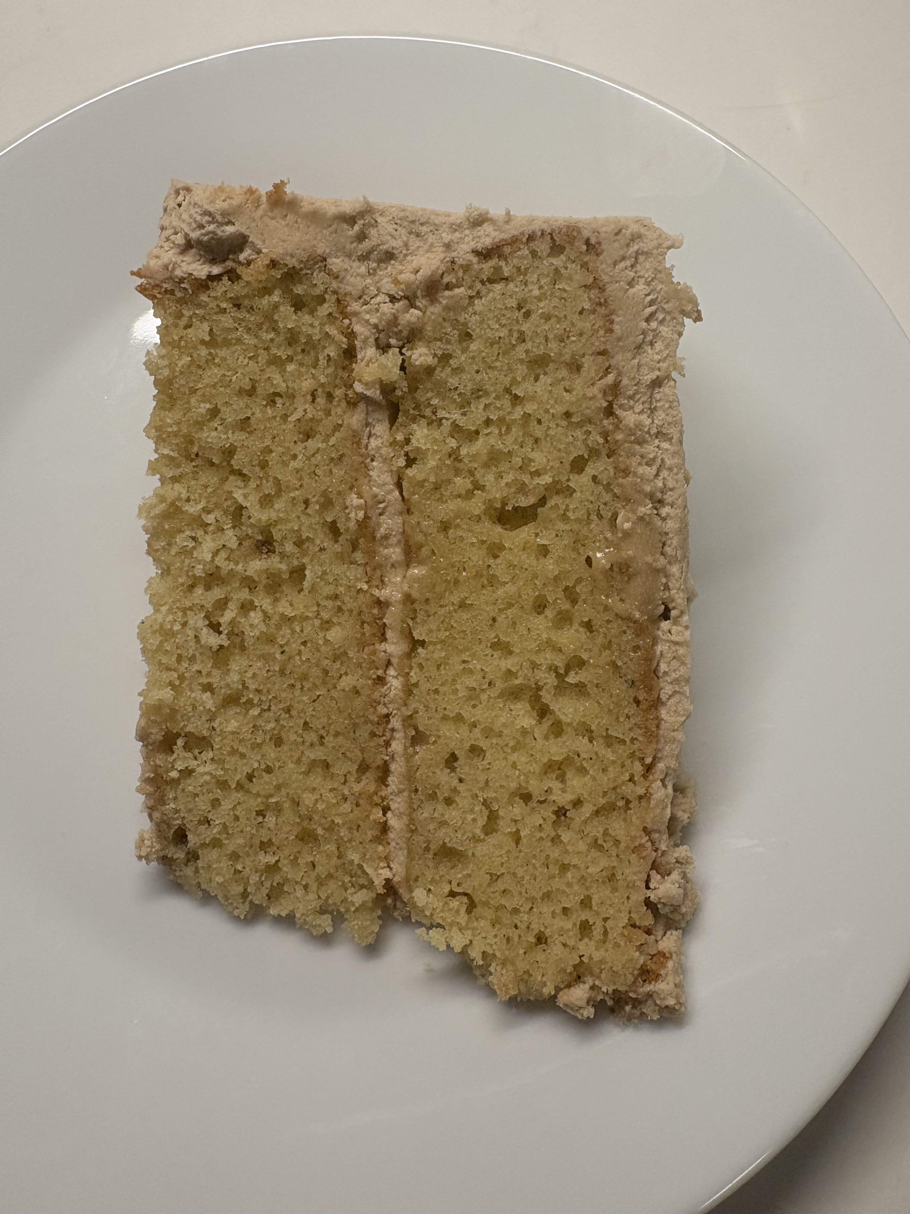 The last slice of a cardamom cake with cooked flour coffee frosting. Cake recipe is from Vanilla Bean Baking Book and recipe is sort of from the blog of the same name. This is my mother’s favourite, so it was a belated birthday cake for her. Still scrumptious a week later.