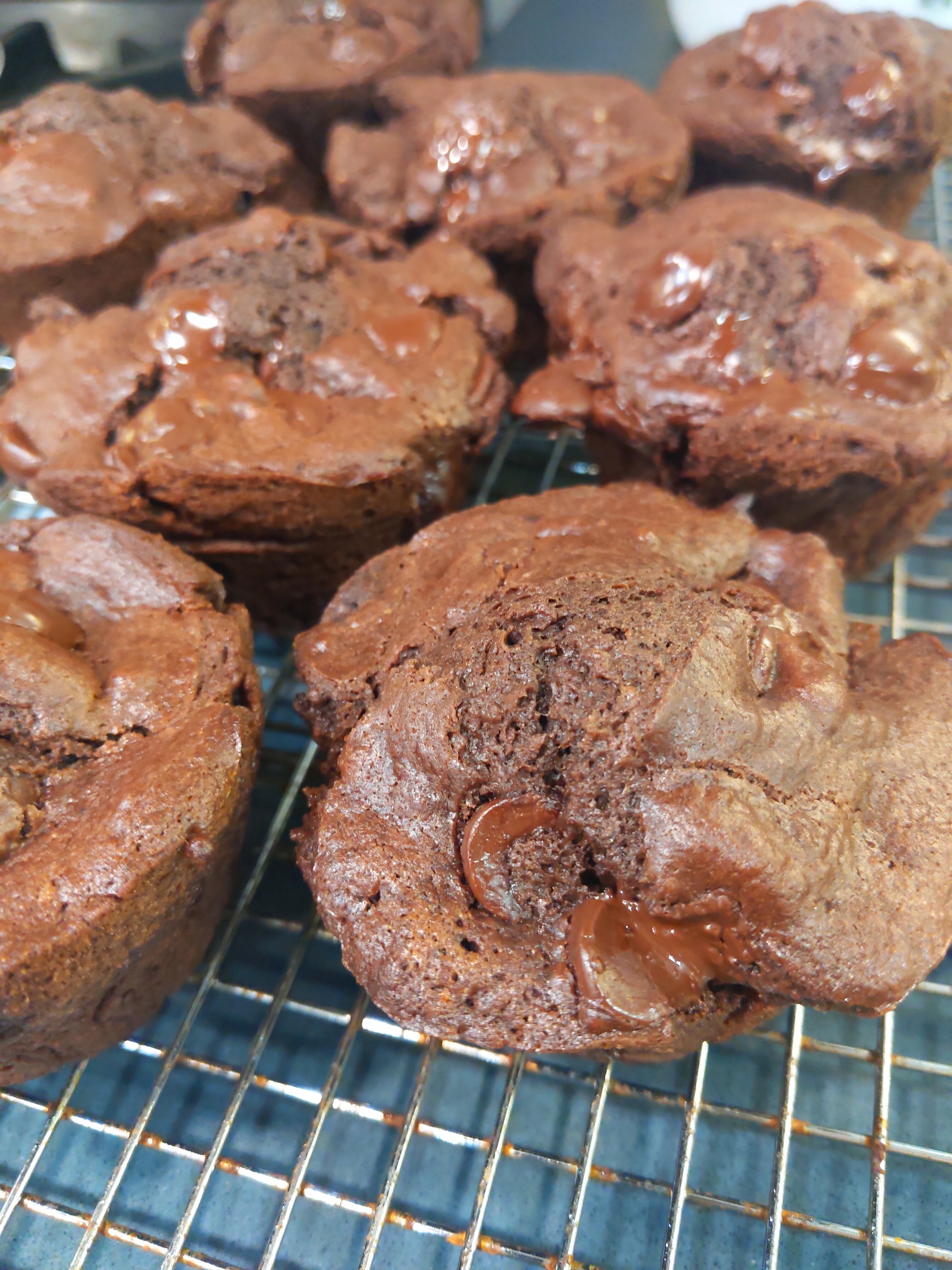 I decided to try these double chocolate muffins since I had no fruit and some sourdough discard to use up.
