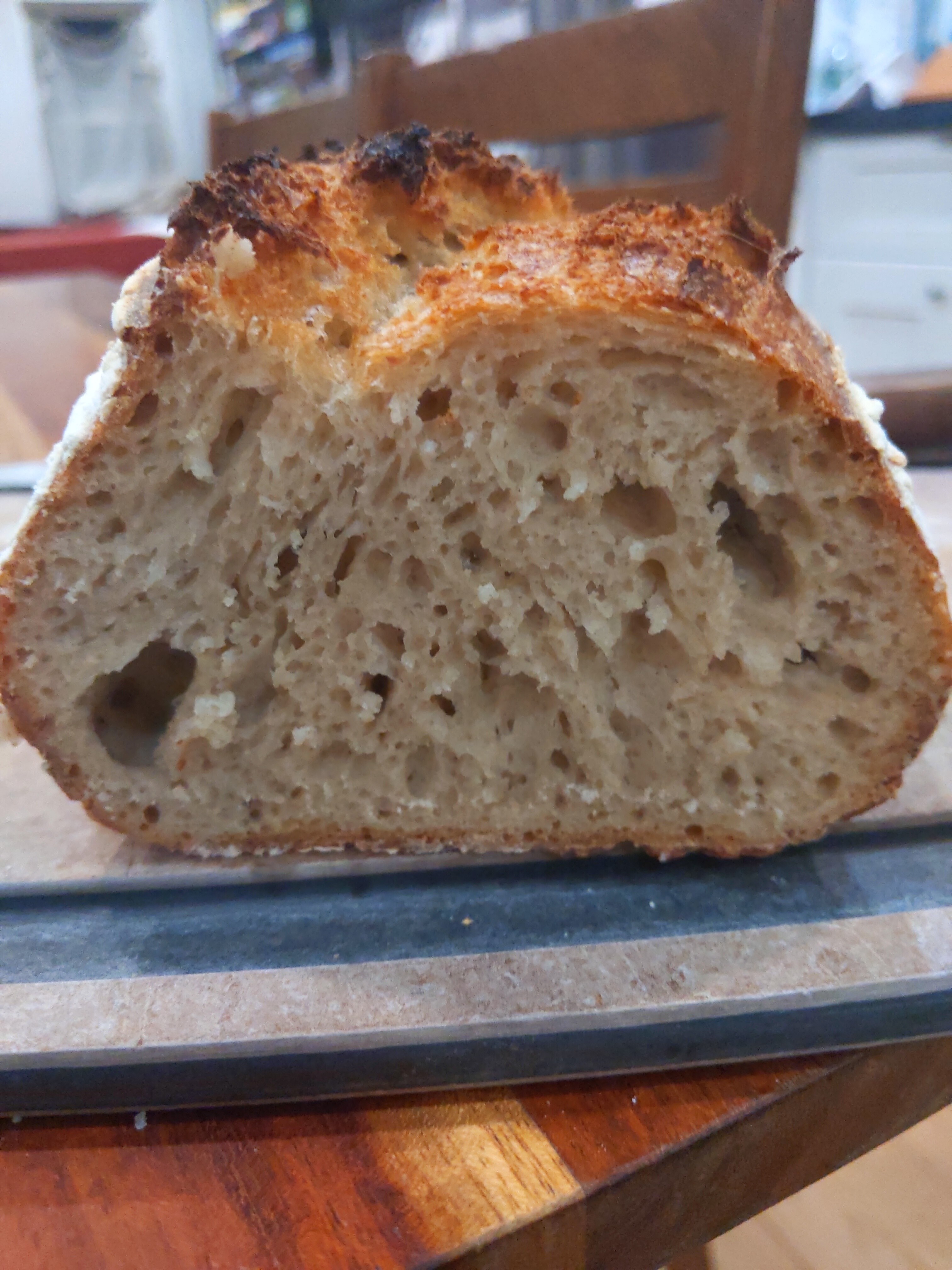 Much better (moister and softer) a few slices in after an overnight rest. I’ll bet it’s delicious with all white flour too ![]()