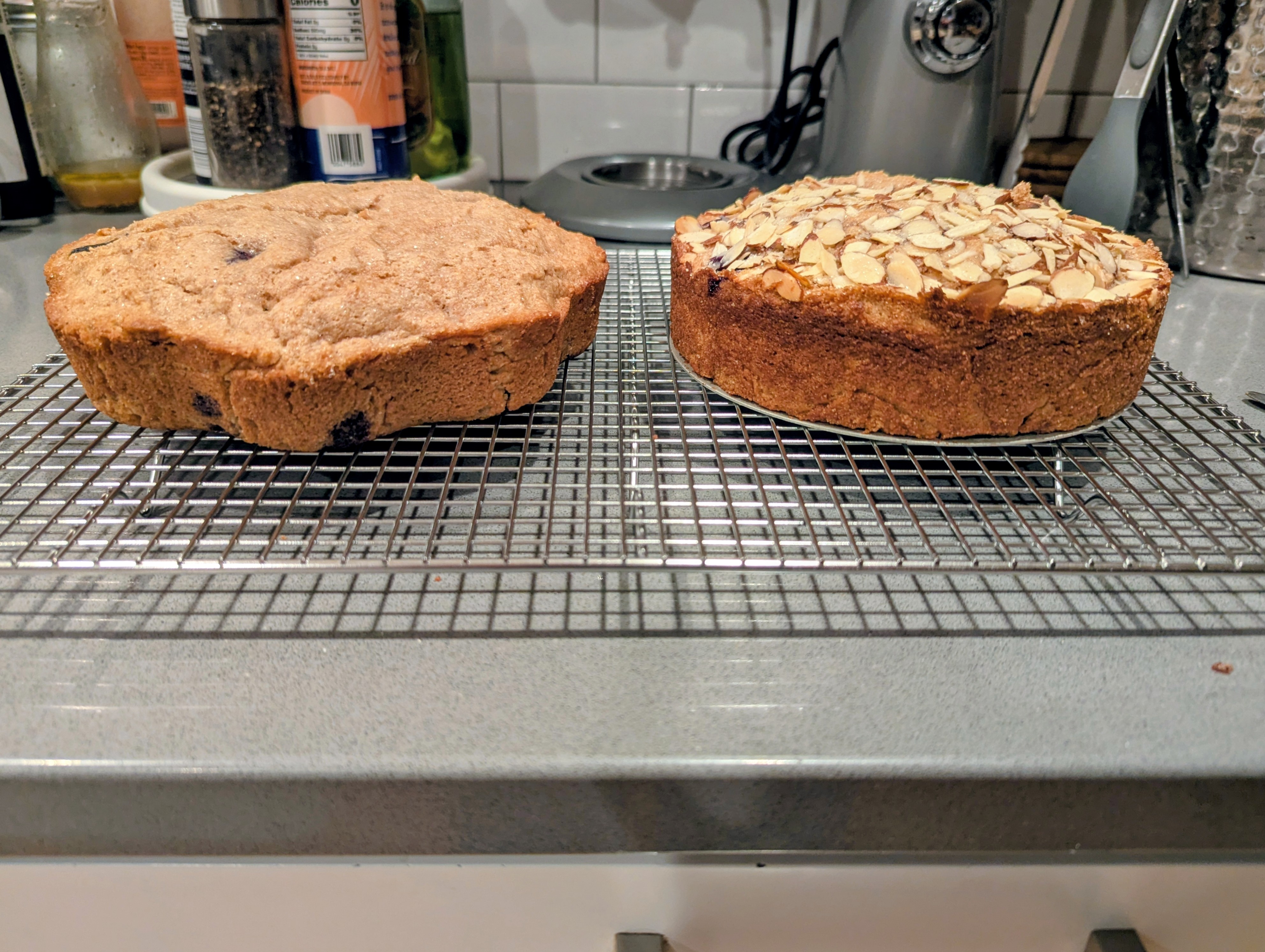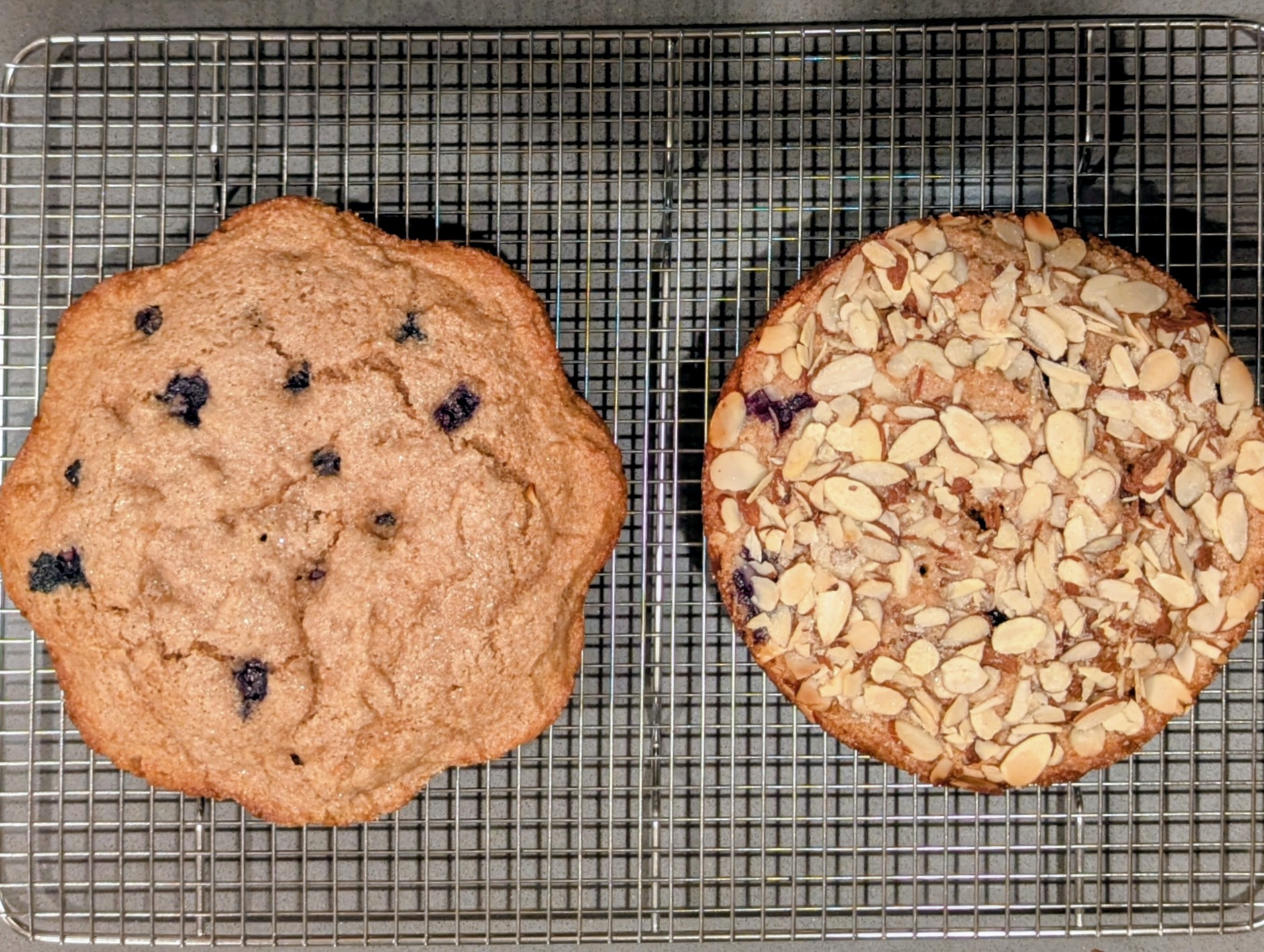 This time they were all blueberry and I baked them into cakes instead (one with sugar topping and the other with sliced almonds and sugar). One is for my friend with the new baby.