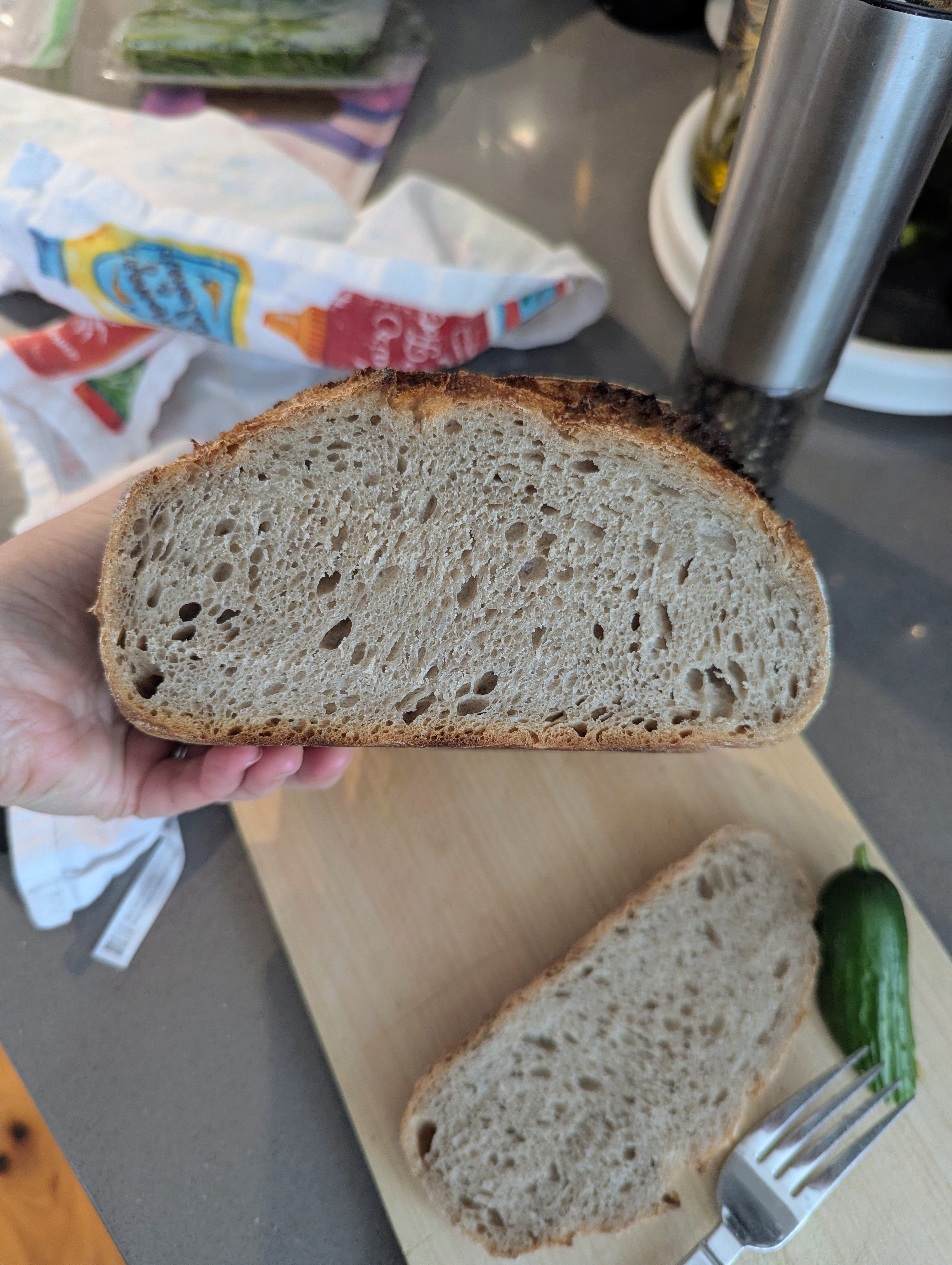 I made a sourdough boule with 36% rye flour. Haven’t cut into it yet but it looks good, at least! I suspect it’s denser than all wheat flour sourdough.