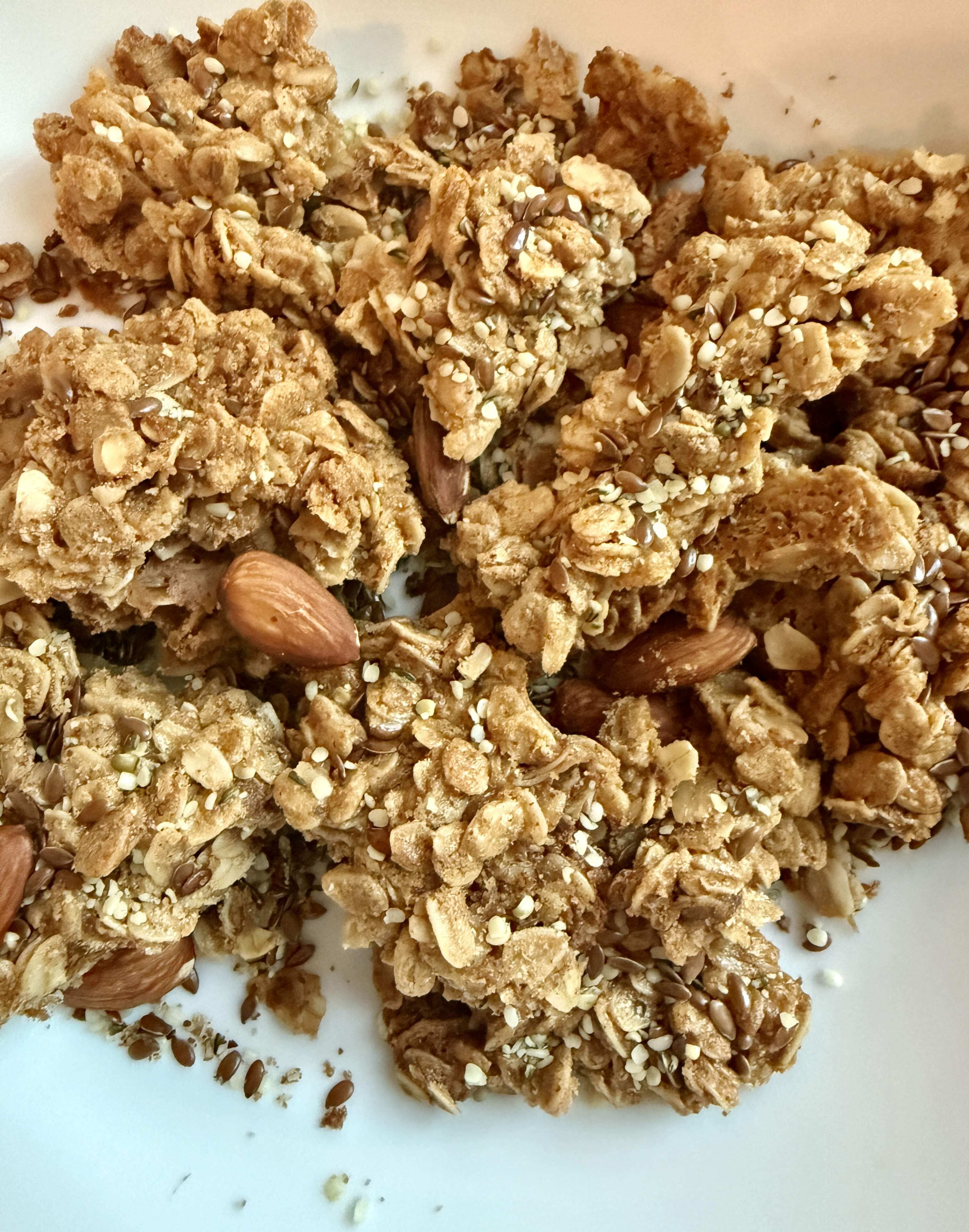 Almond granola from sure thing desserts - this fantastic - I used maple syrup instead of honey. The almond butter makes it a little softer than I prefer granola to be but it’s delicious