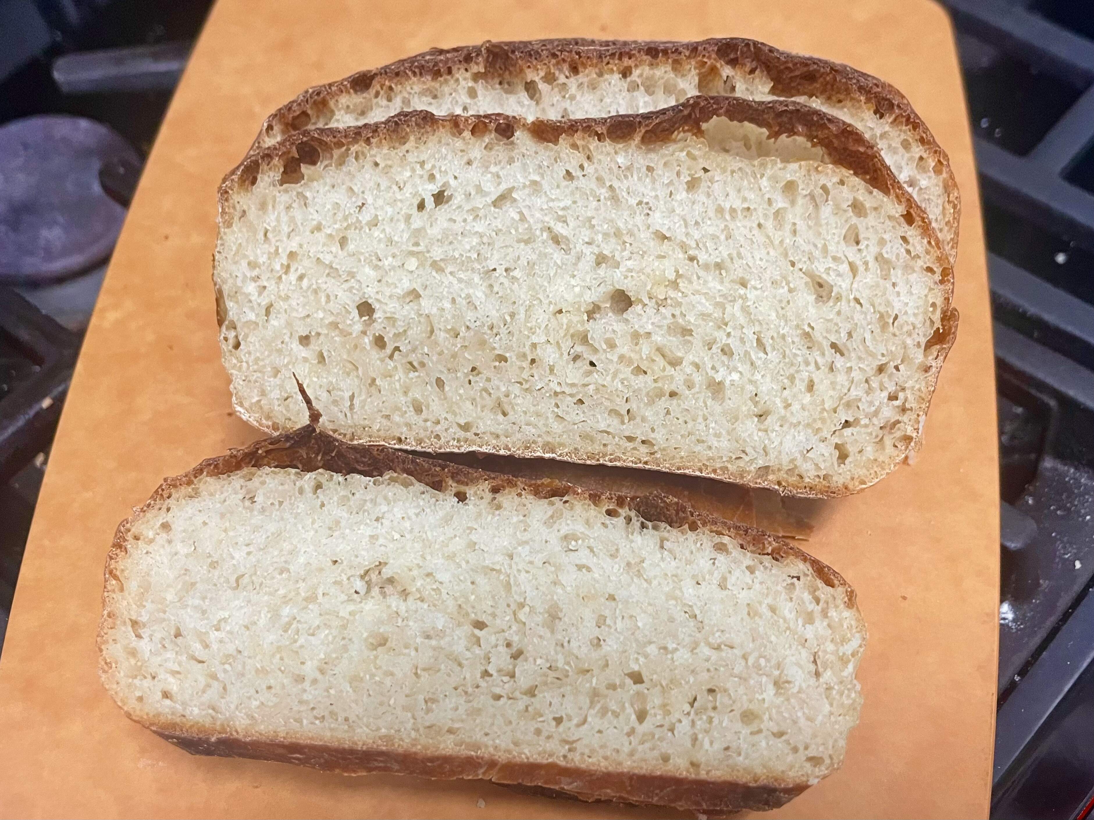 SE modified no-knead aged for 2 days in the fridge, withmy usual tangzhong (to keep it moist because it takes me a while to get through a loaf).
