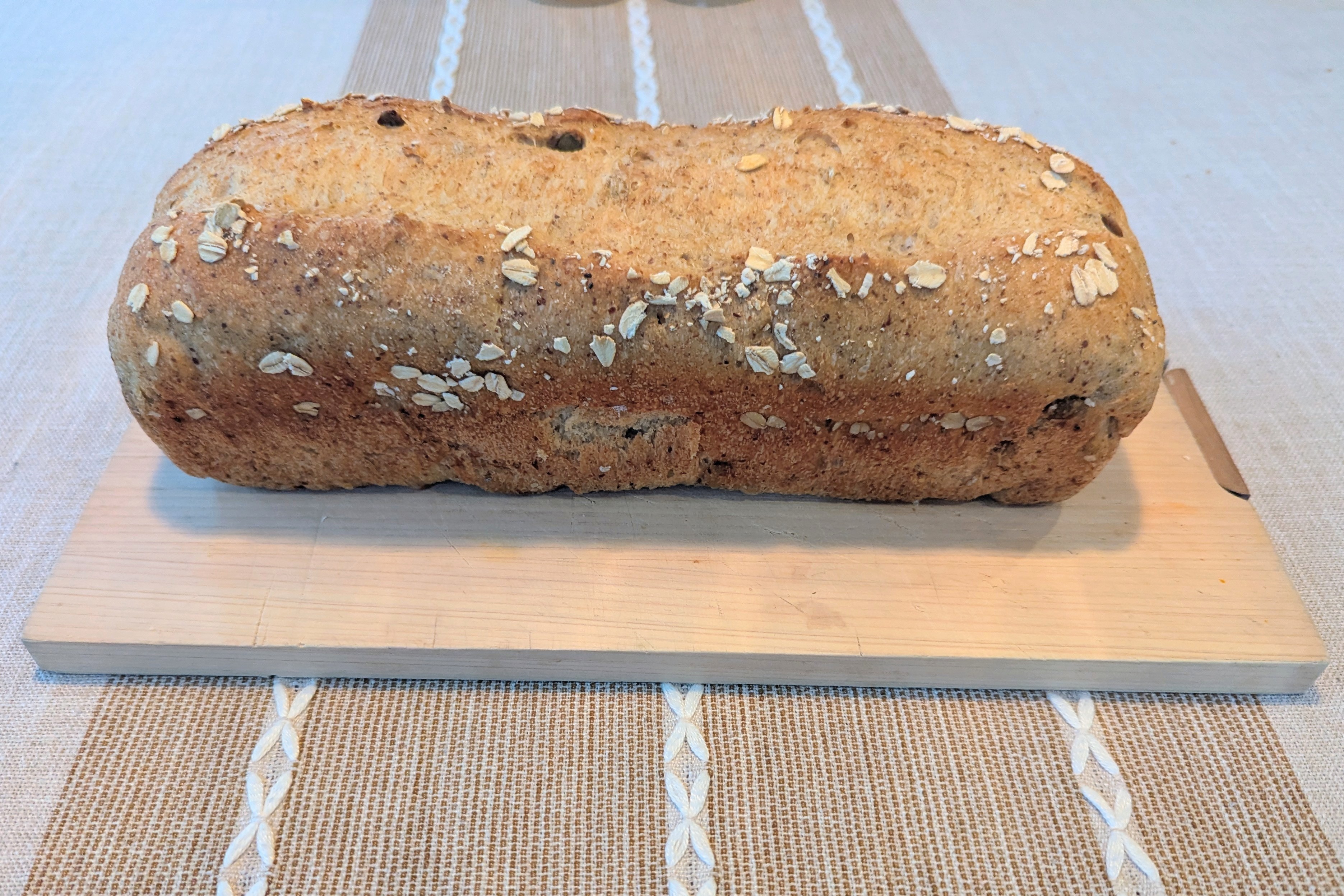 I think of this as more of a hearty white bread than a true whole-grain loaf, given the large proportion of white bread flour.