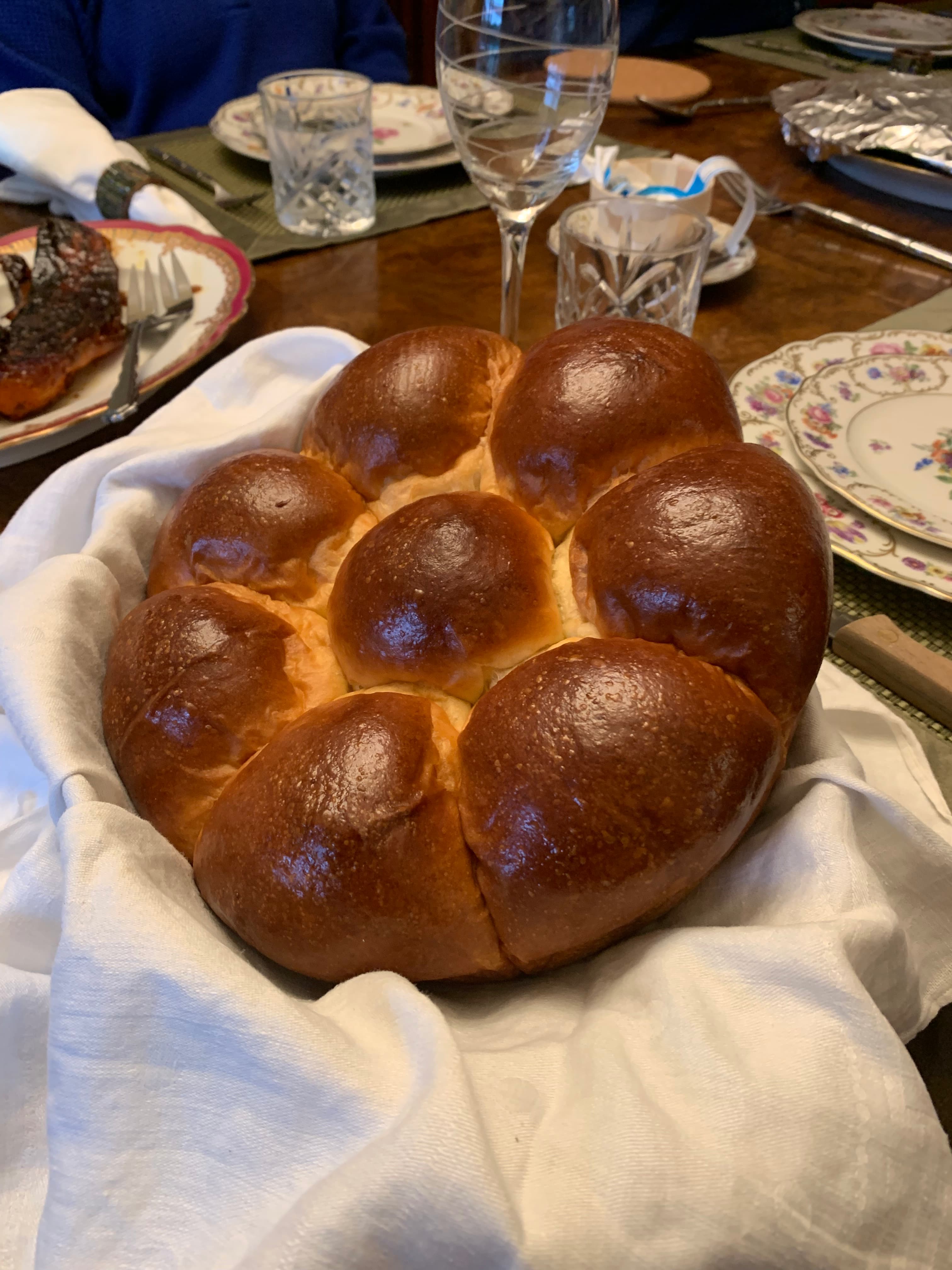 From last evening, this is possibly the most attractive pan of rolls I’ve ever made. King Arthur potato bread recipe plus an egg wash. Perfectly brown and shiny.