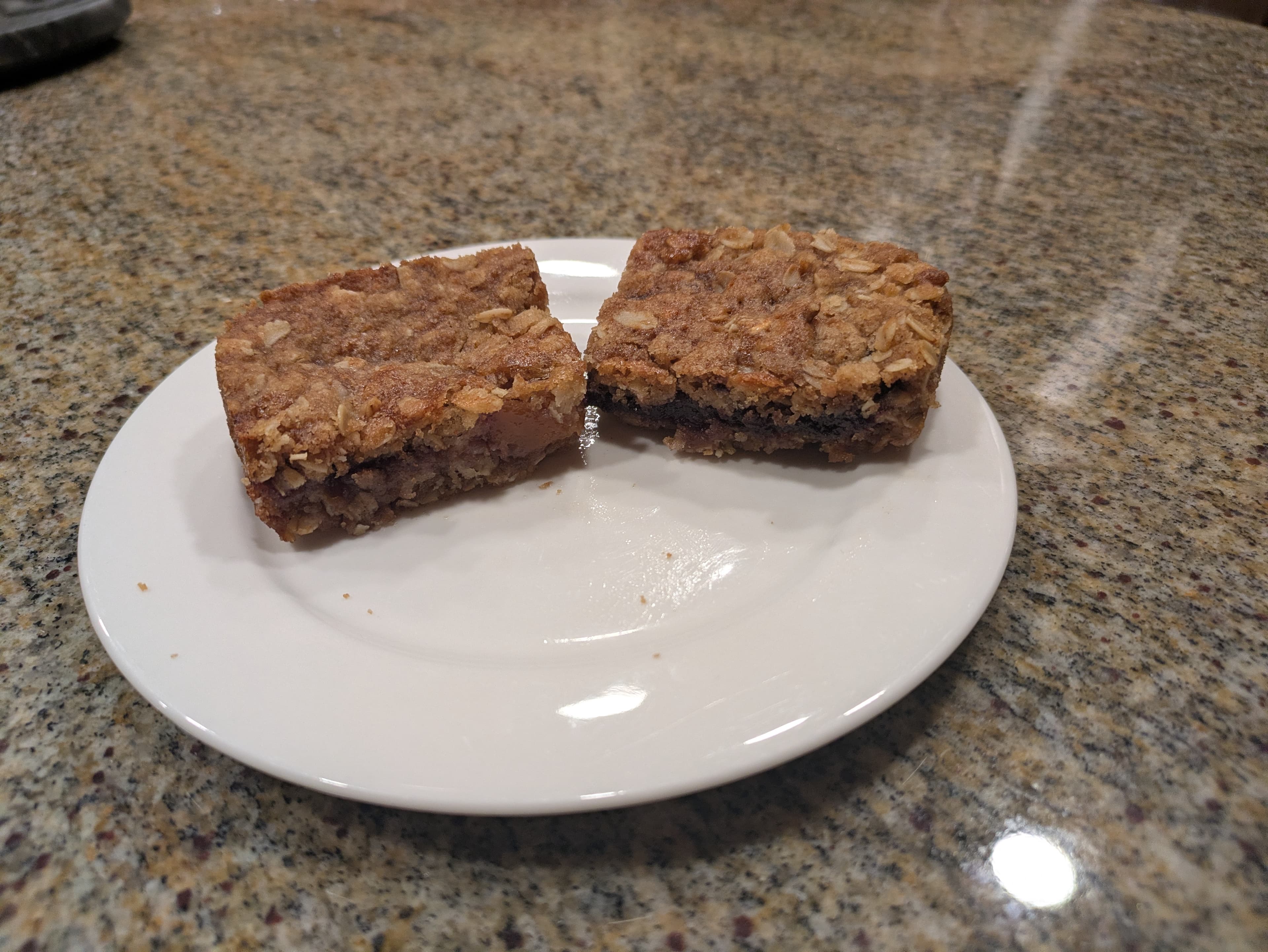 Ready for the close up; some sections peach jam (left), some blackberry (right),