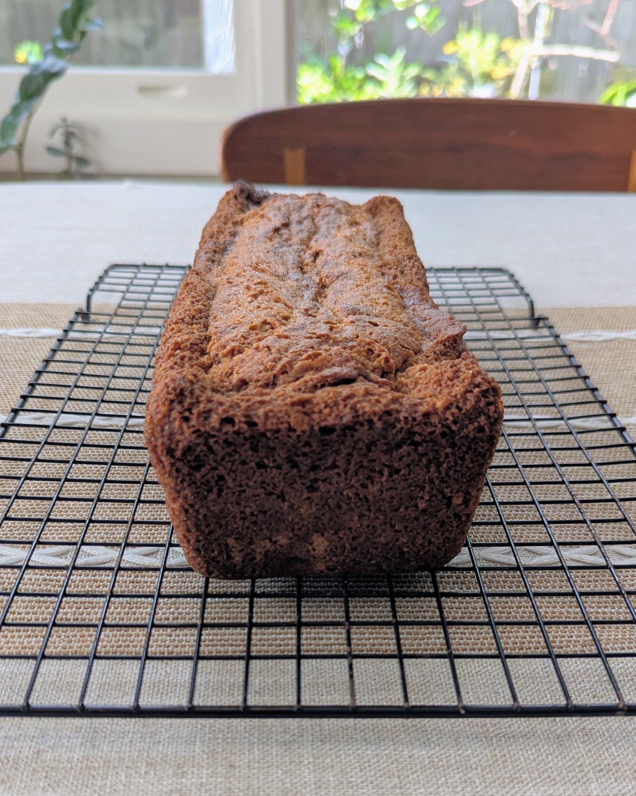 Today I turned three overripe bananas into Joanne Chang’s banana bread. I subbed some whole wheat and turbinado for a bit of the AP and white sugar, and fat free Greek yogurt for the sour cream. Turned out very well. I added a pinch of baking soda and used convection to help with the rise, as well as started it at 400° for 10 minutes before dropping to 325°. Forgot walnuts, but that would have been a nice addition.