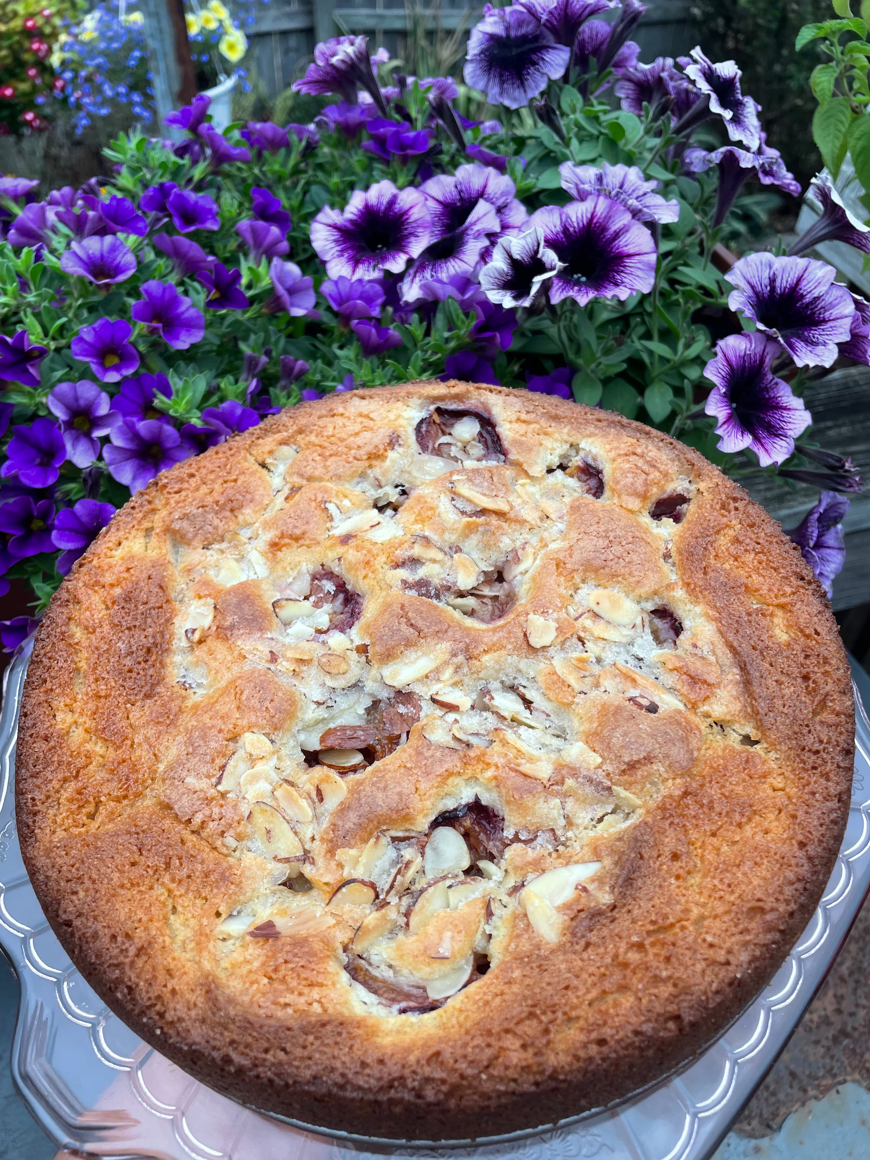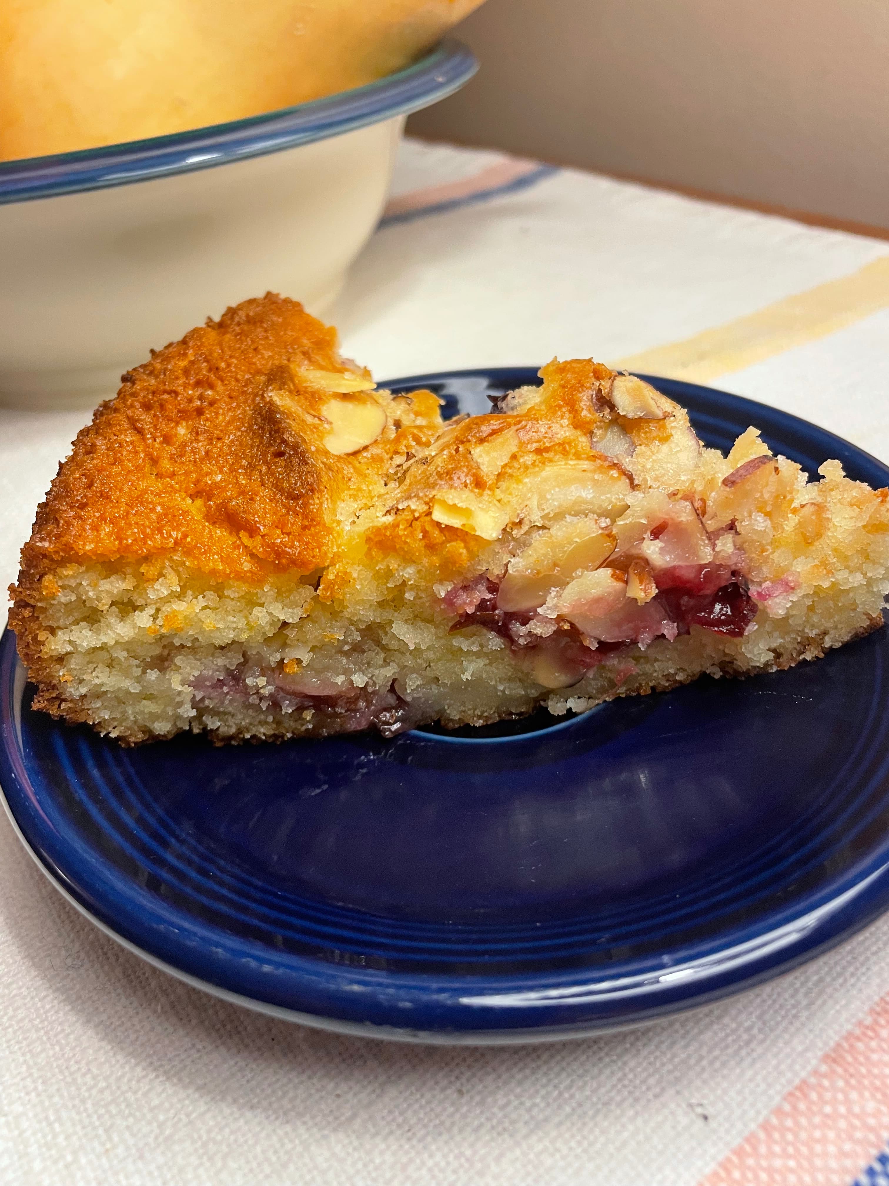 Decided to try this as a point of comparison to Thee Plum Torte. For this recipe, there are nuts for crunch (which appealed to me) and an almond flavor focus, with both extract in the batter and a nut-rich topping. (The purple plum torte, in contrast, has a nice hit of cinnamon, which is very welcomed with the plums.)